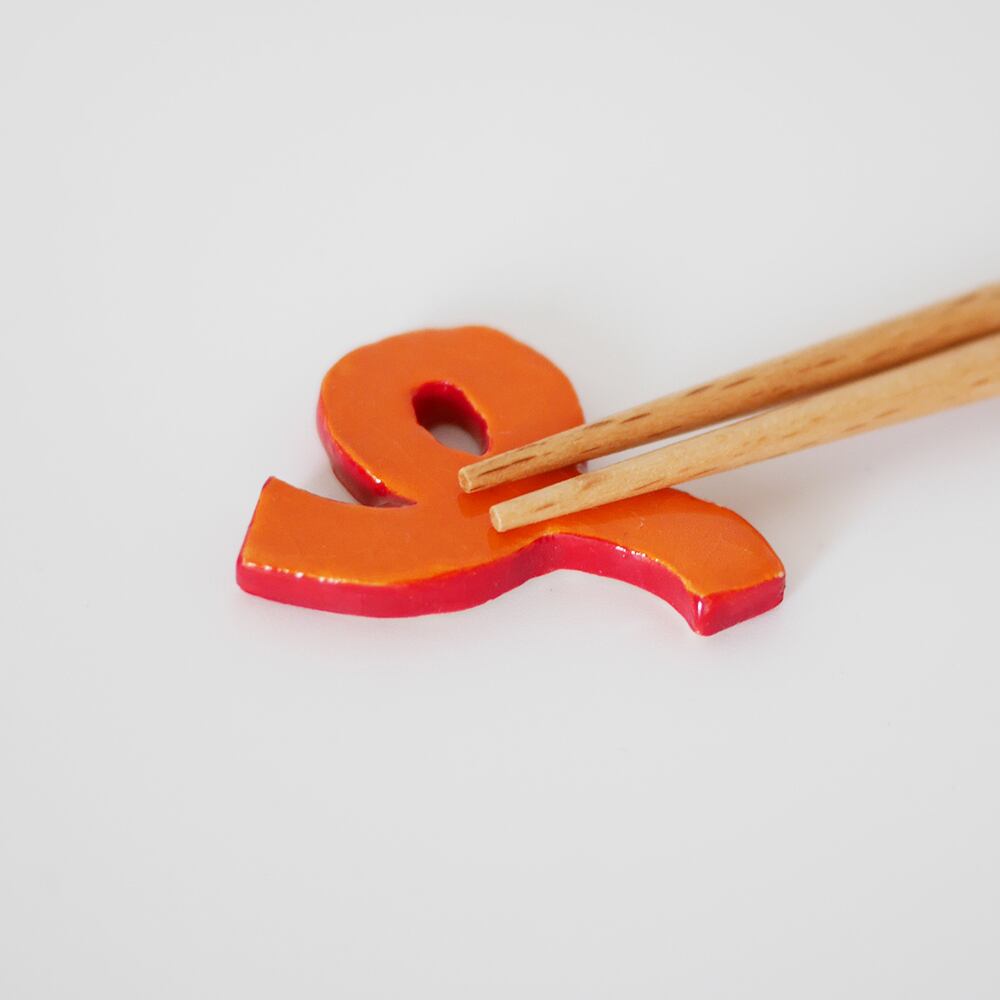 うねうねしたフォルムに、ポップな色合いで絵付けをした陶器の箸置きです。