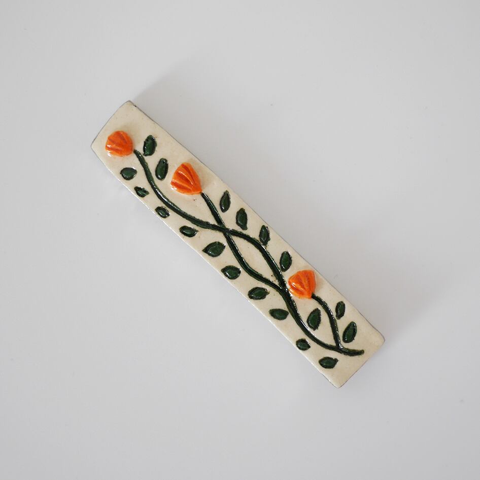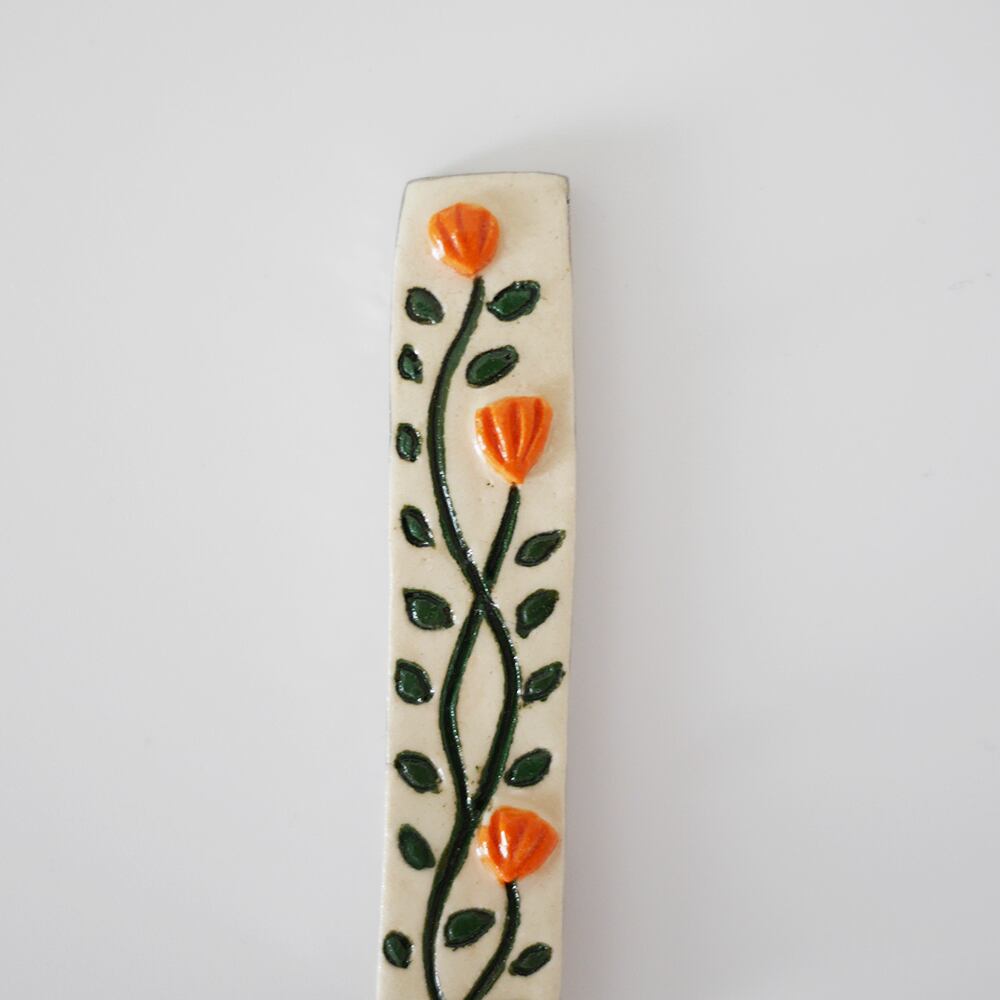 花柄が入った陶器のカトラリーレストです。