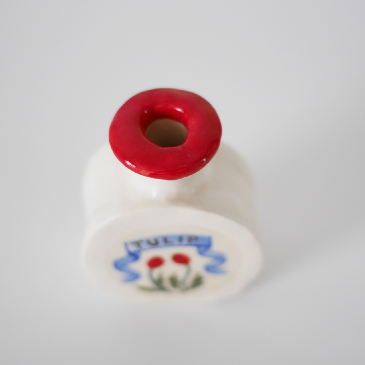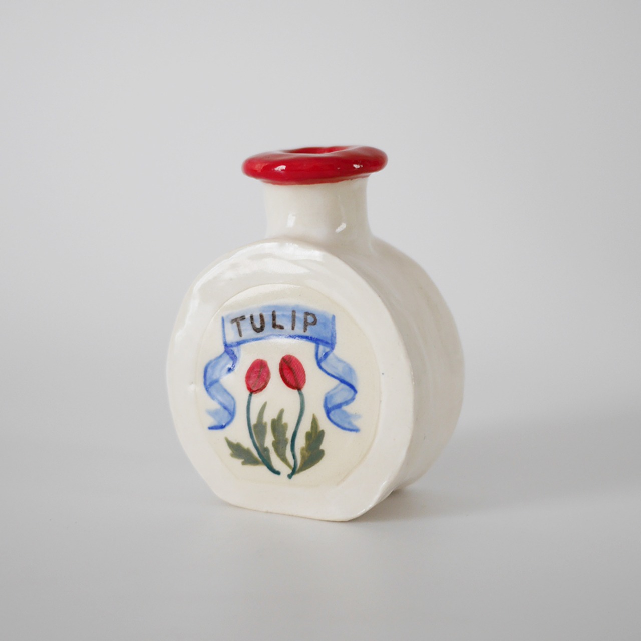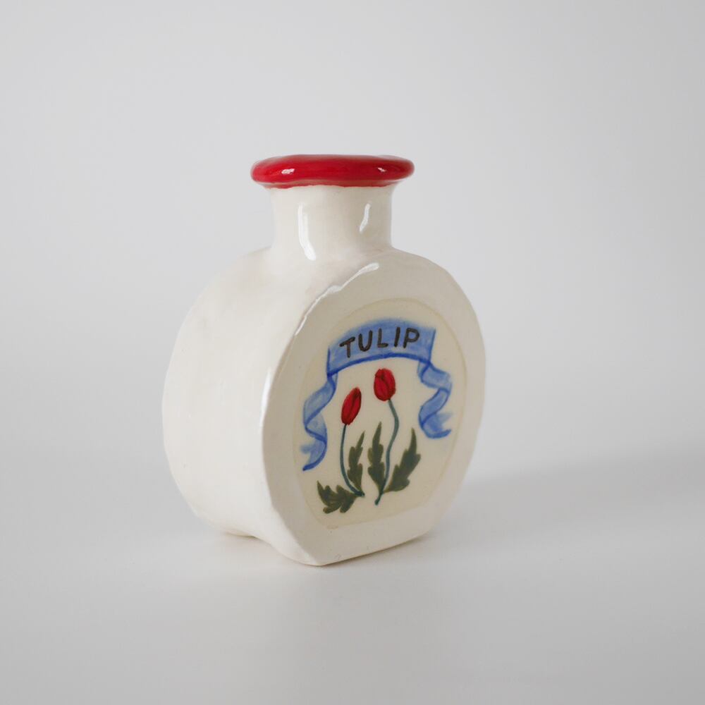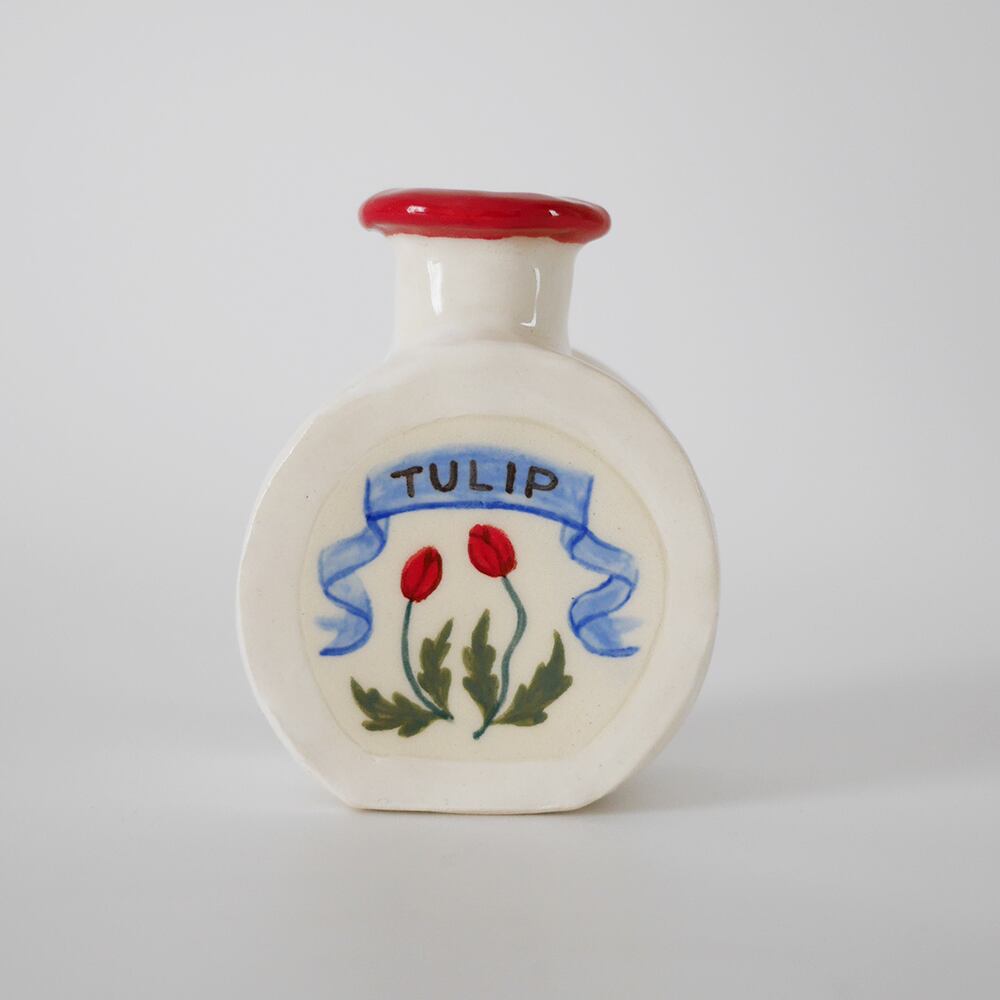 チューリップのパッケージをイメージしたイラストを絵付けしました。