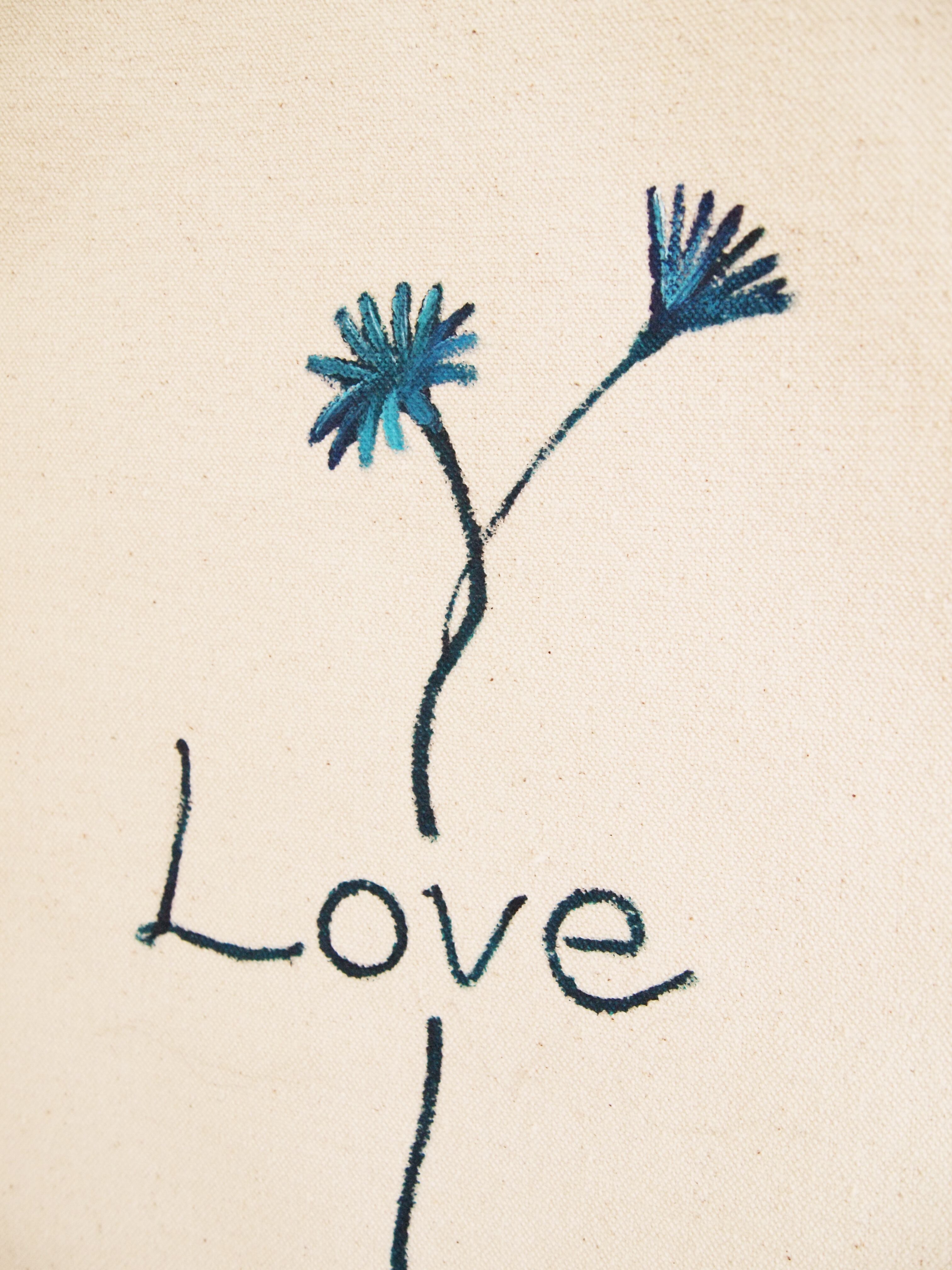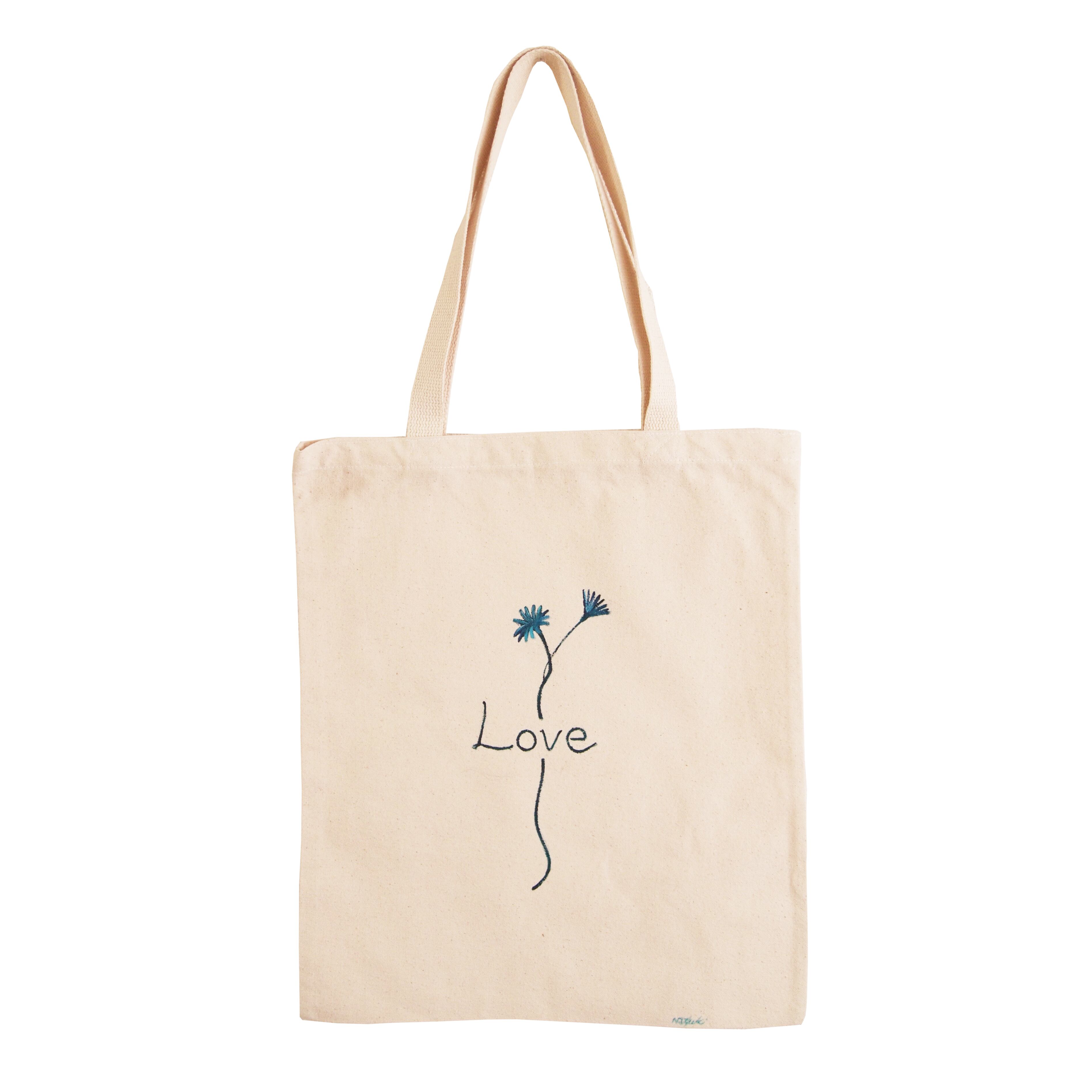 キャンバストートの上に、一点一点丁寧に直接イラストを描いて制作しています。