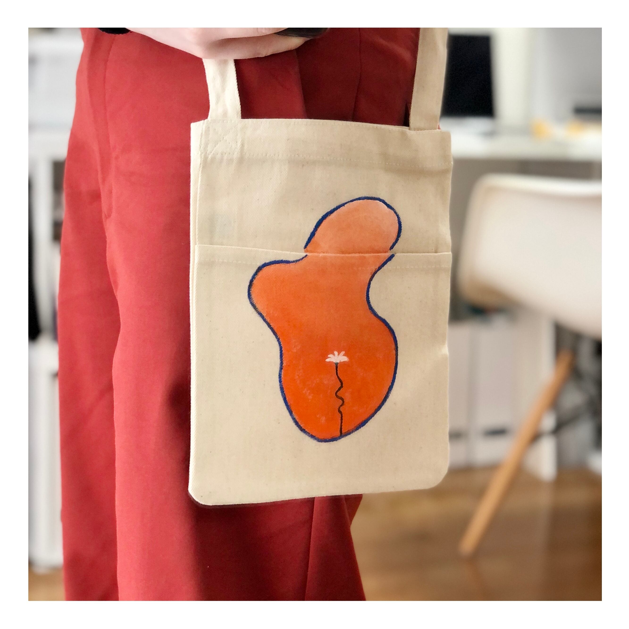 コットンポシェットの上に、直接イラストを描いた一点ものです。