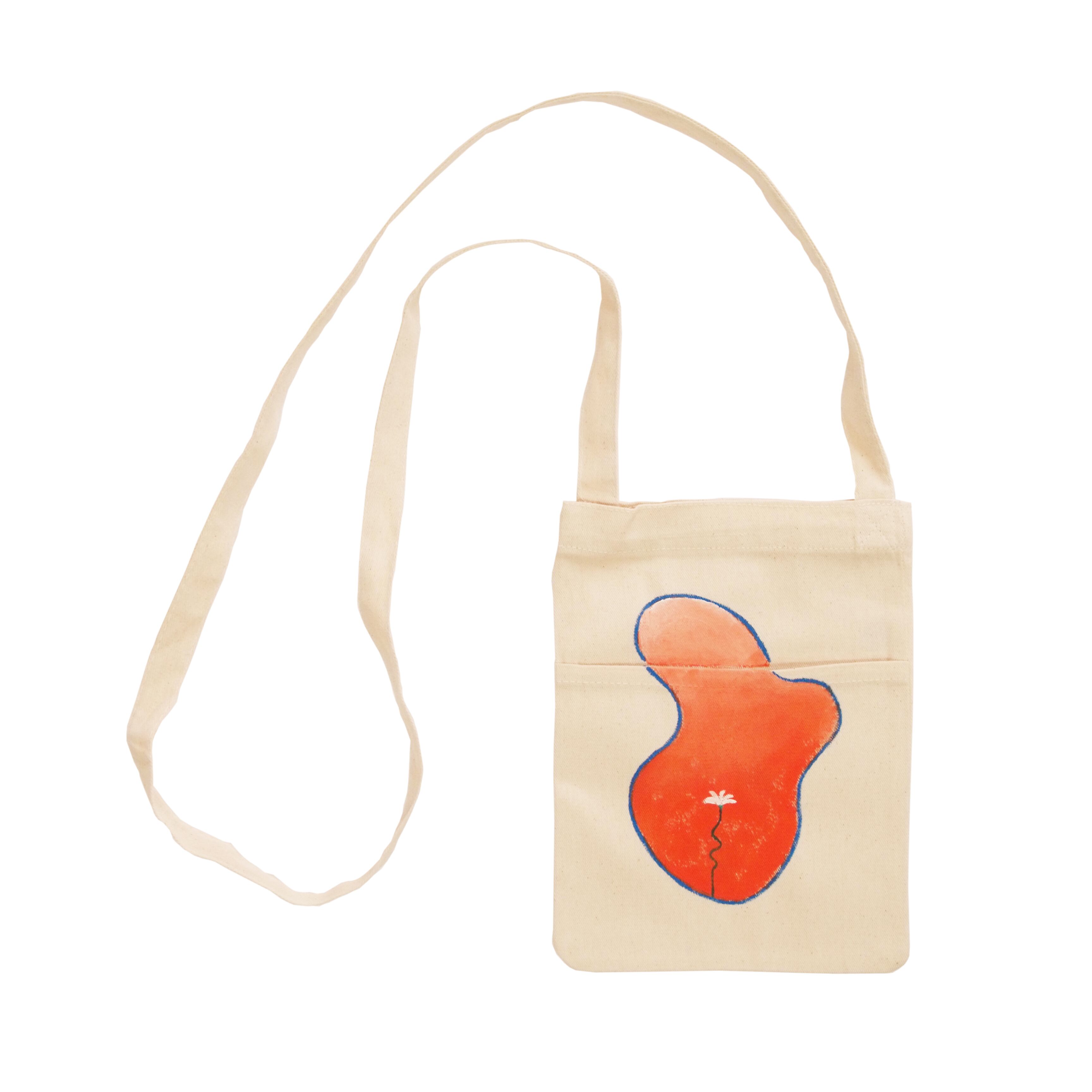 手描きのイラストをあしらったポケット付きのポシェットです。