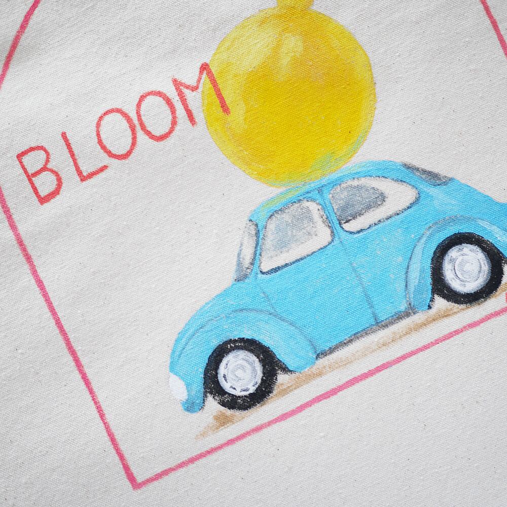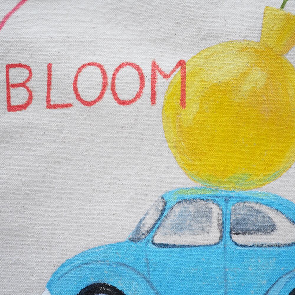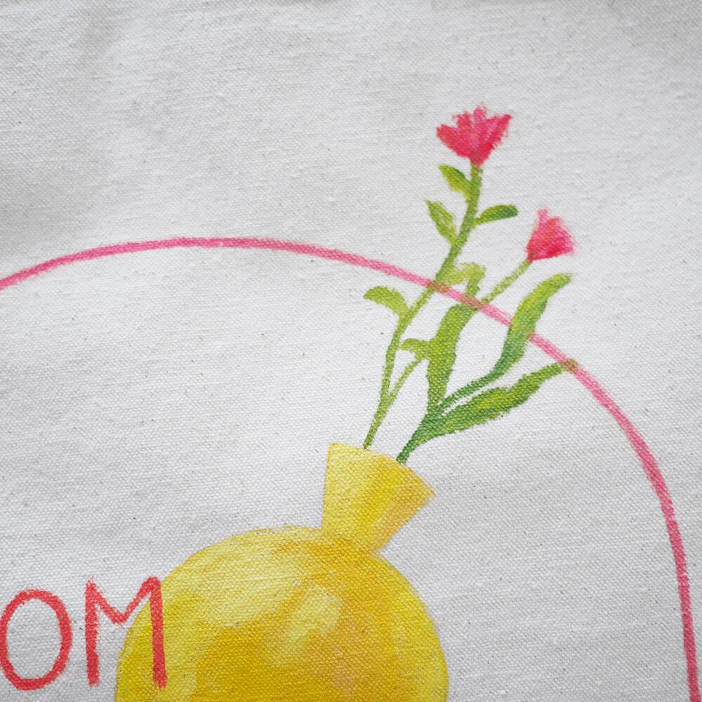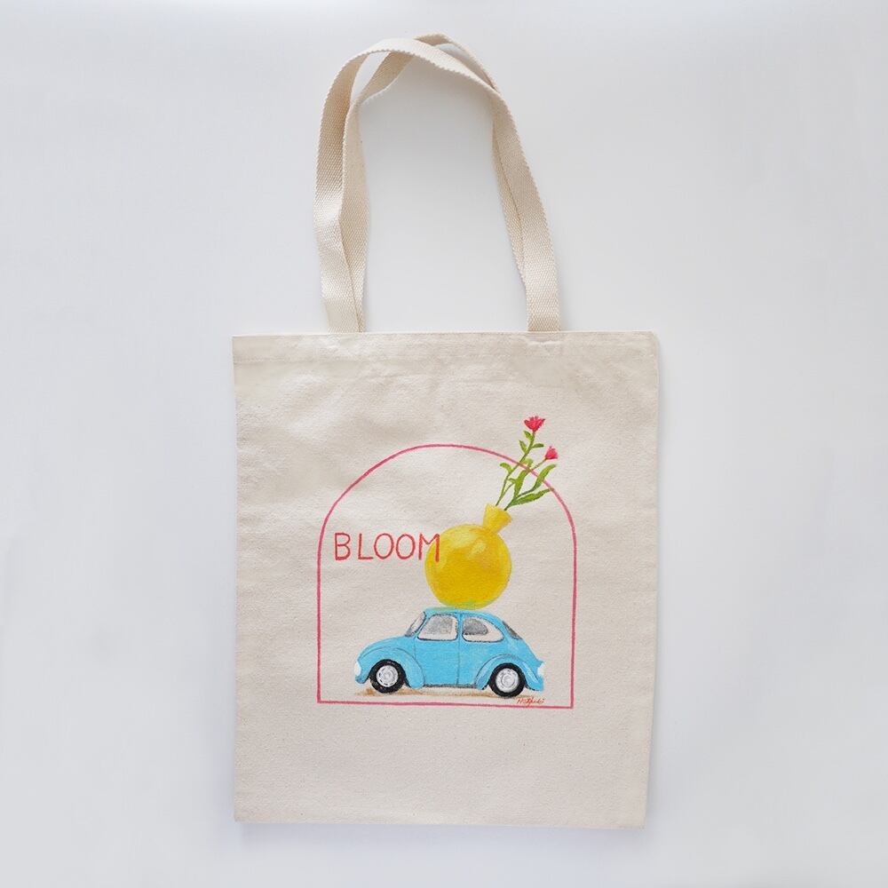 キャンバストートの上に、一点一点丁寧に直接イラストを描いて制作しています。