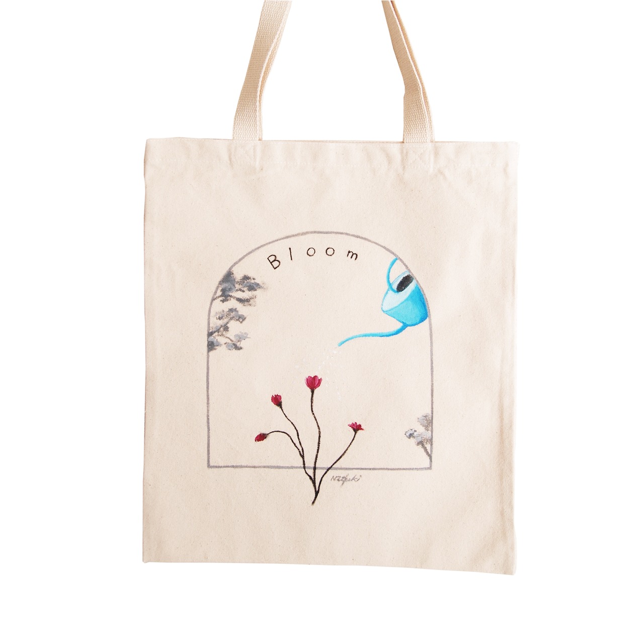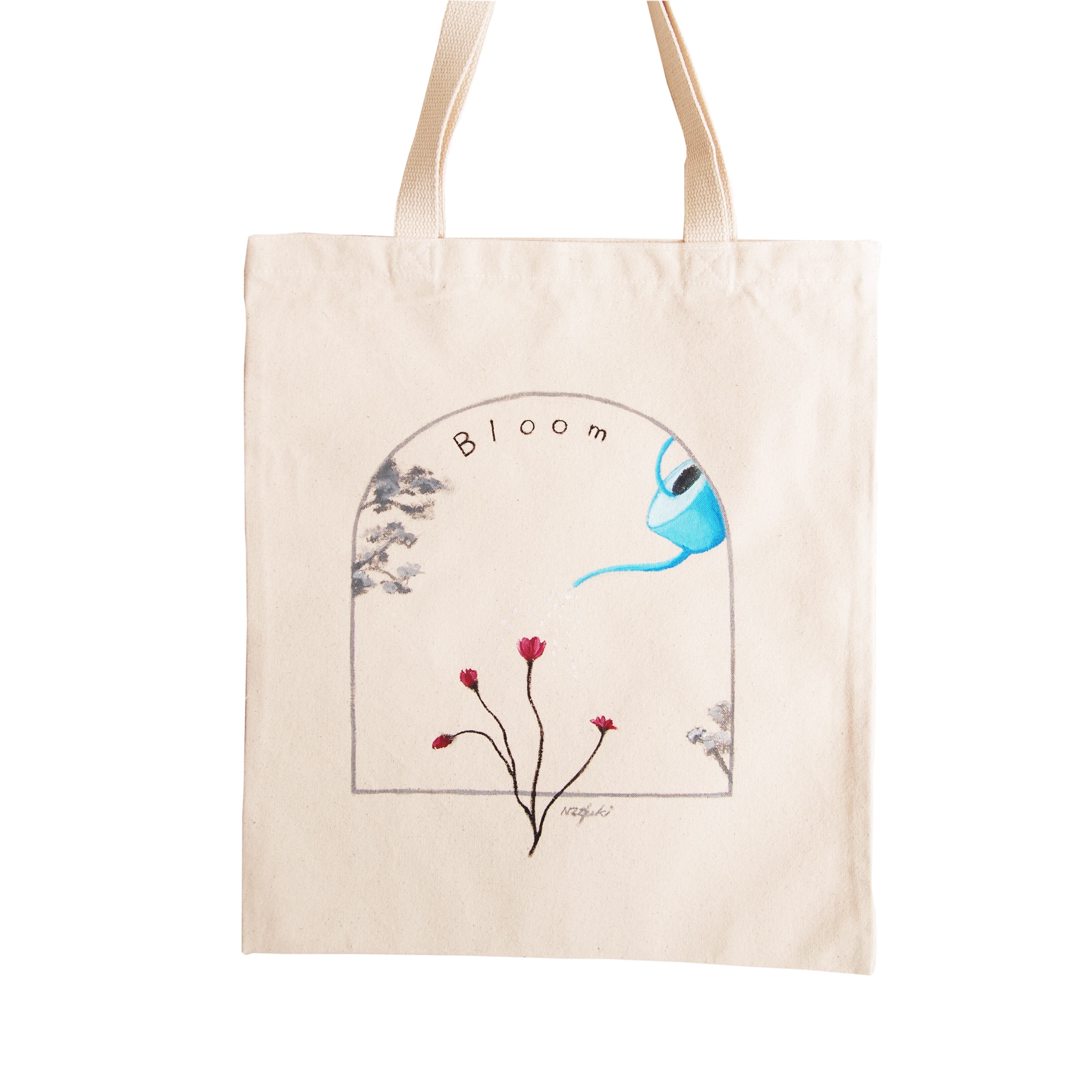 キャンバストートの上に、一点一点丁寧に直接イラストを描いて制作しています。