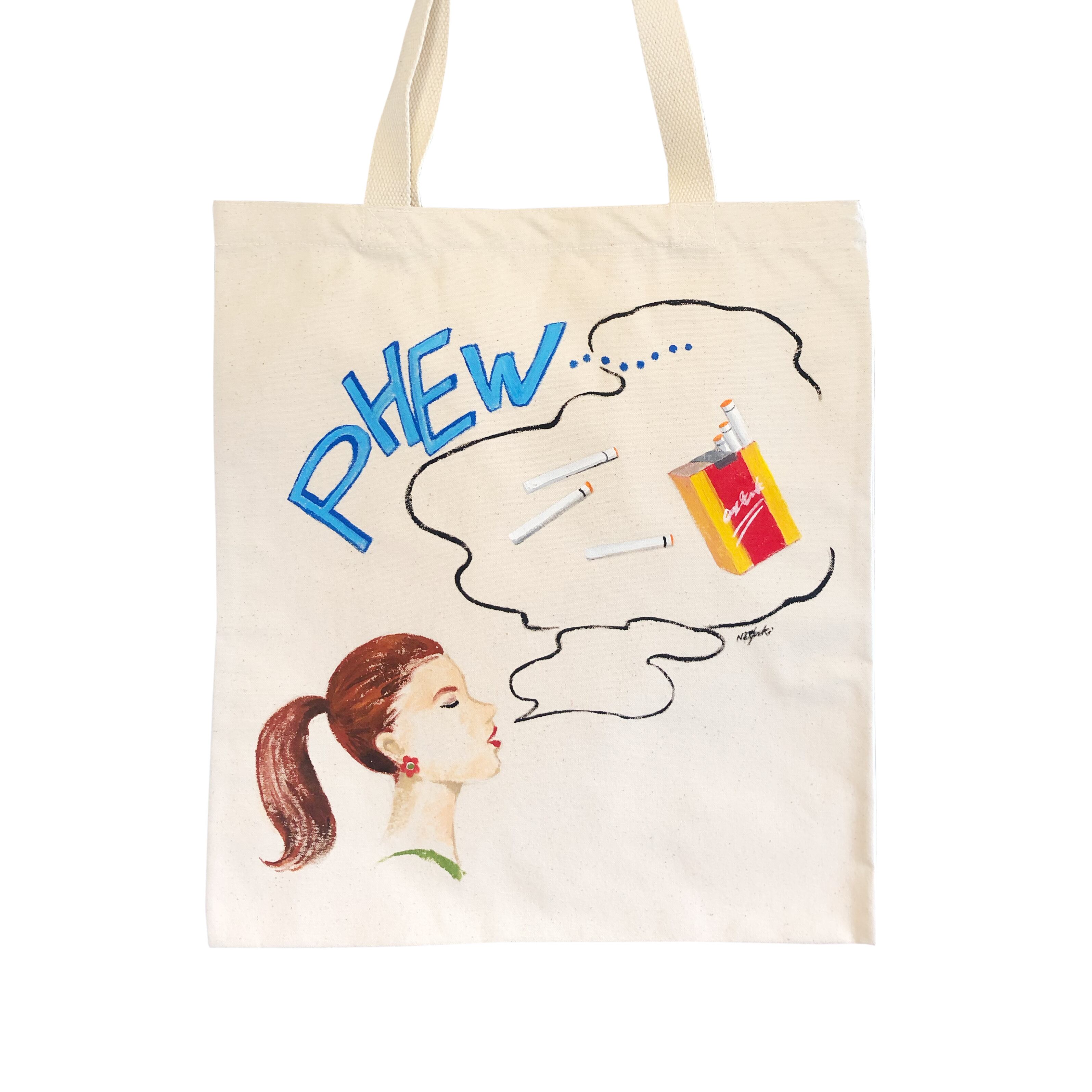 キャンバストートの上に、一点一点丁寧に直接イラストを描いて制作しています。