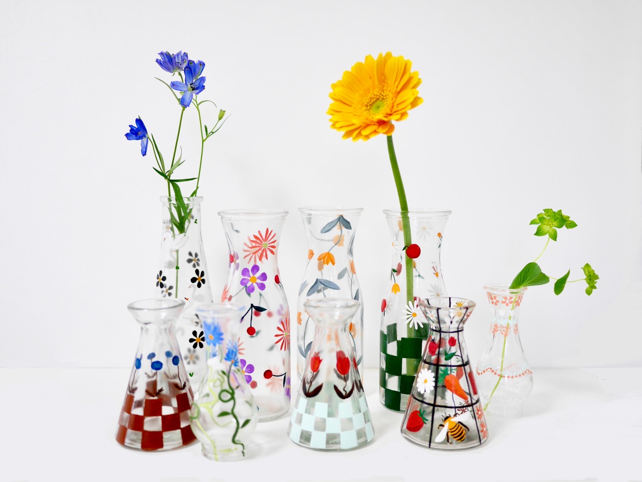 手のひらサイズの花瓶に直接ペイントをほどこした作品。