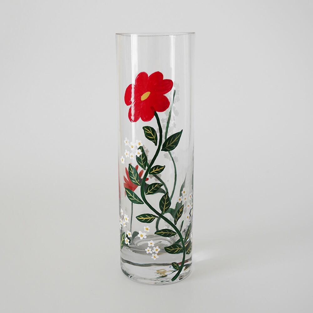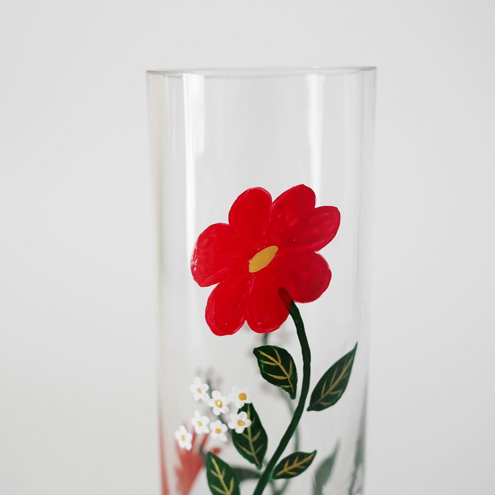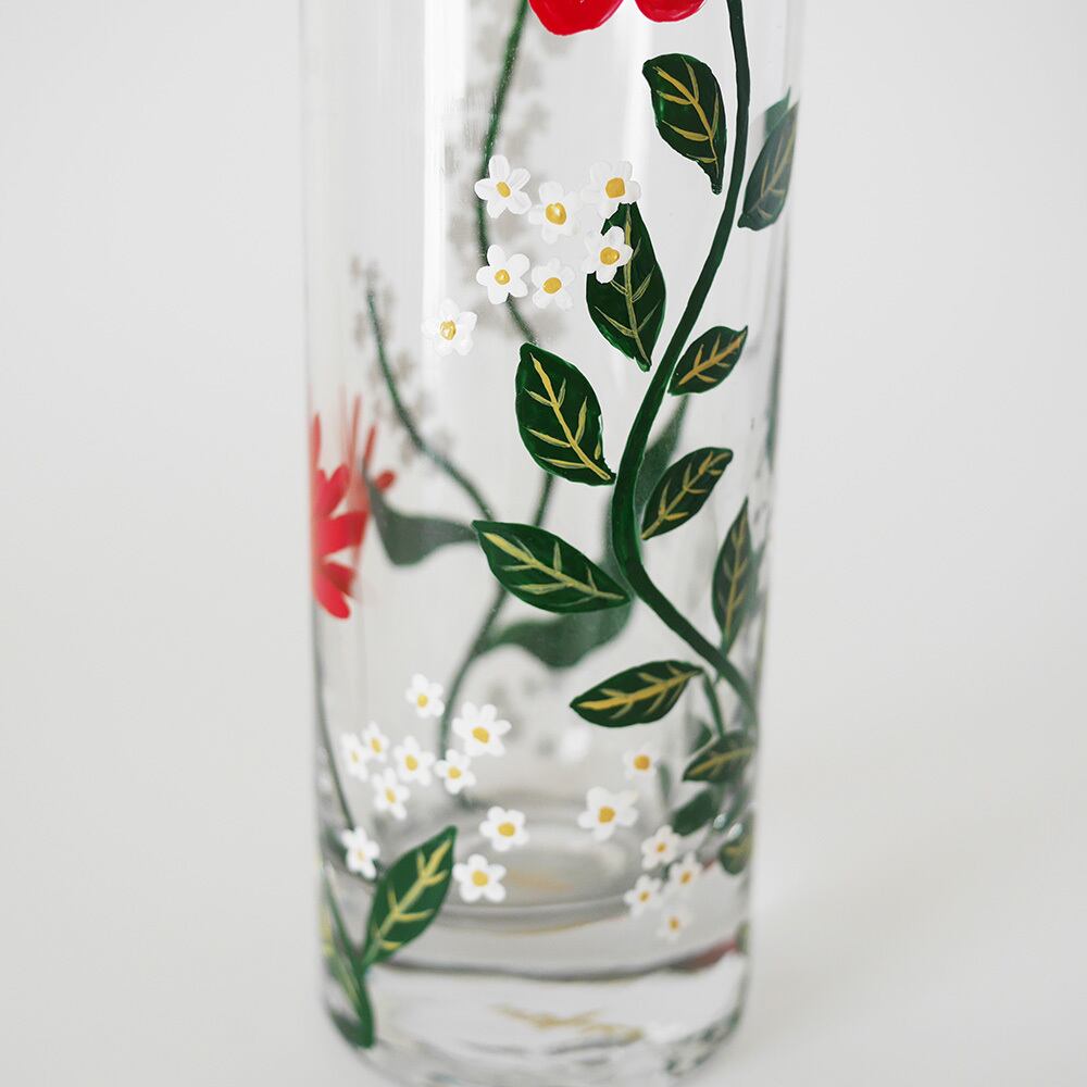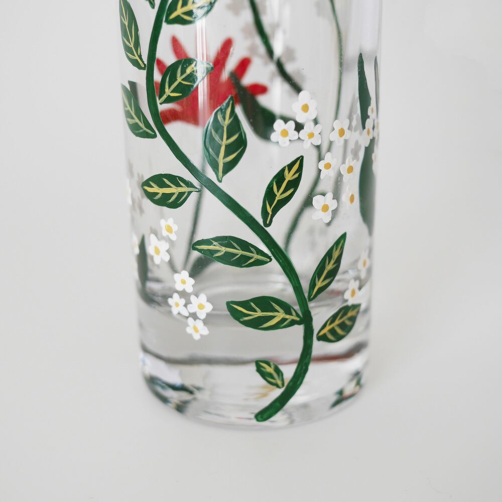 ガラスの花瓶に直接ペイントをほどこした作品。