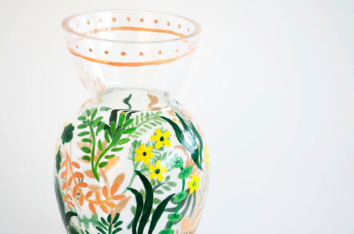 ガラスの花瓶に直接ペイントをほどこした作品です。