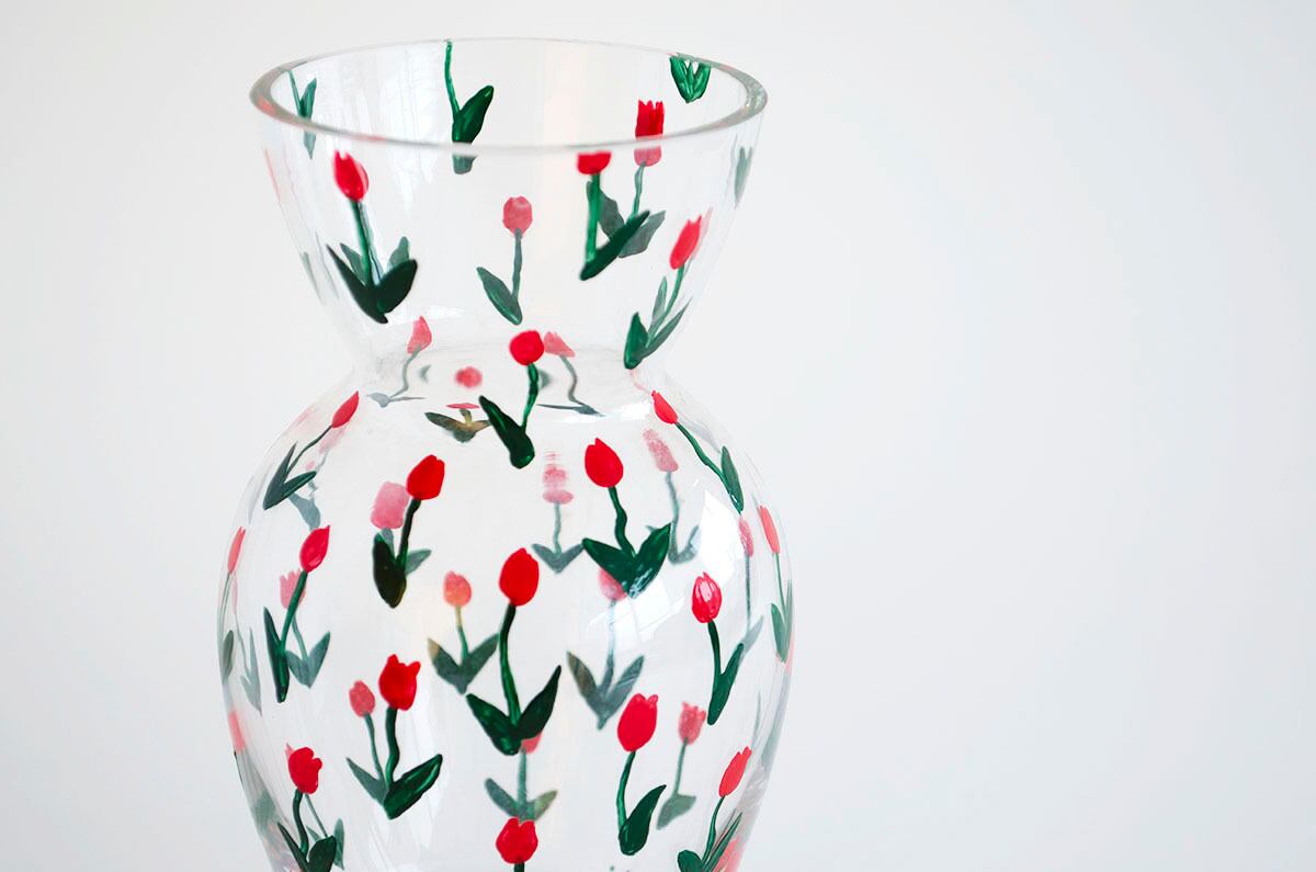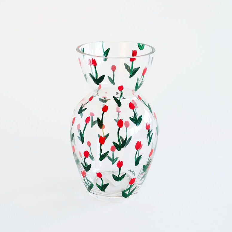 ガラスの花瓶に直接ペイントをほどこした作品です。