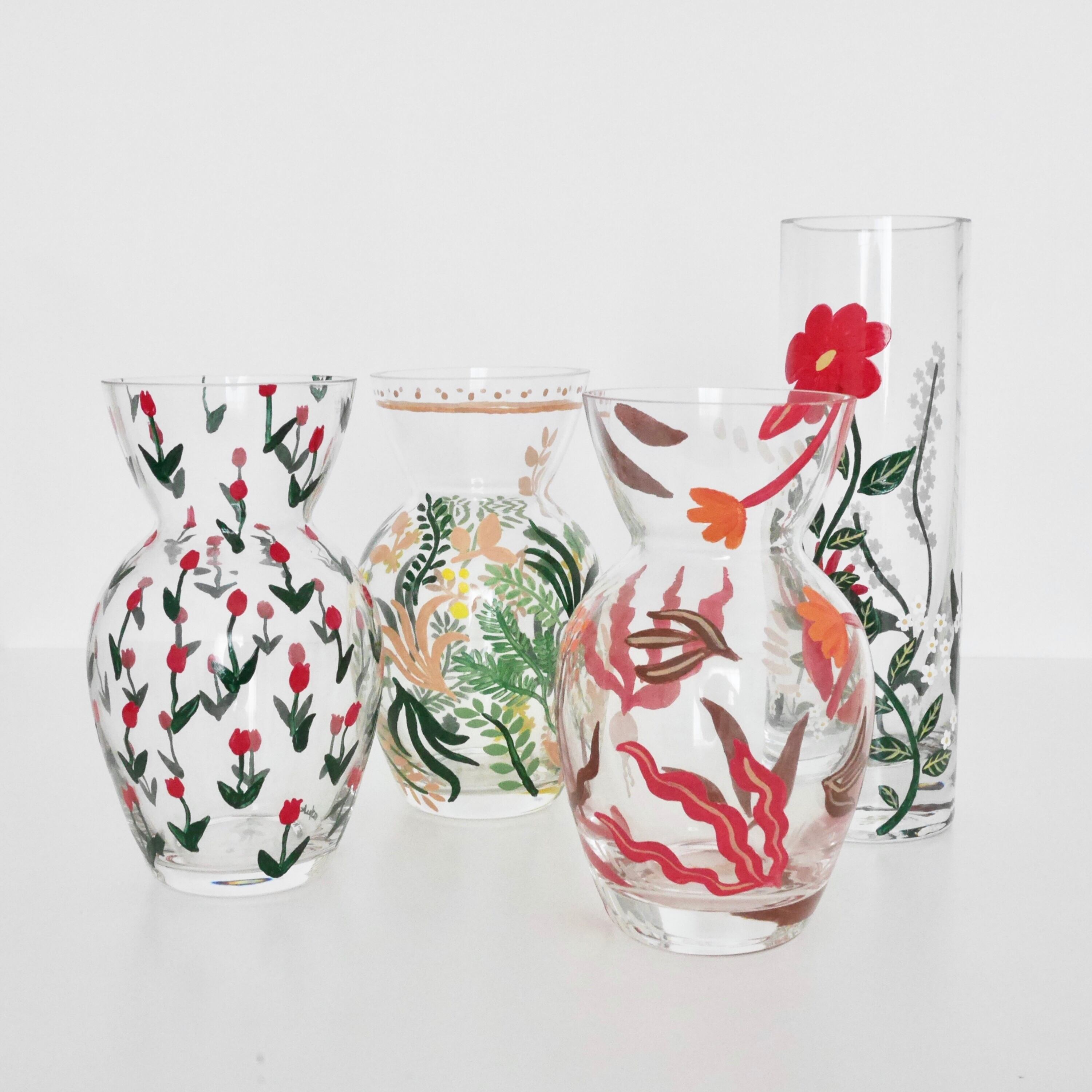 「ヴィンテージショップで、思いがけず出会った一点物の花瓶やお皿」をコンセプトに、ハンドペイントの花瓶を制作しました。