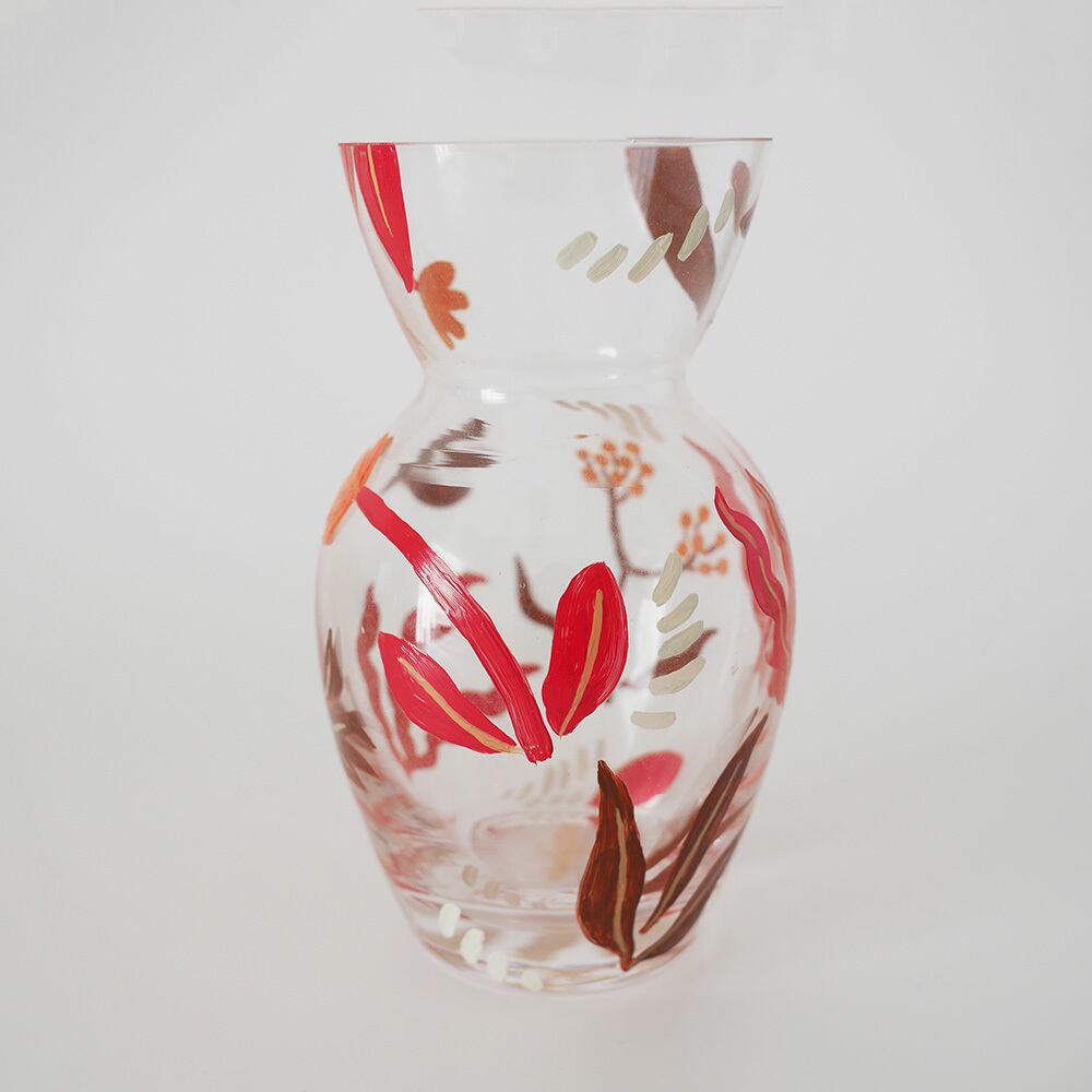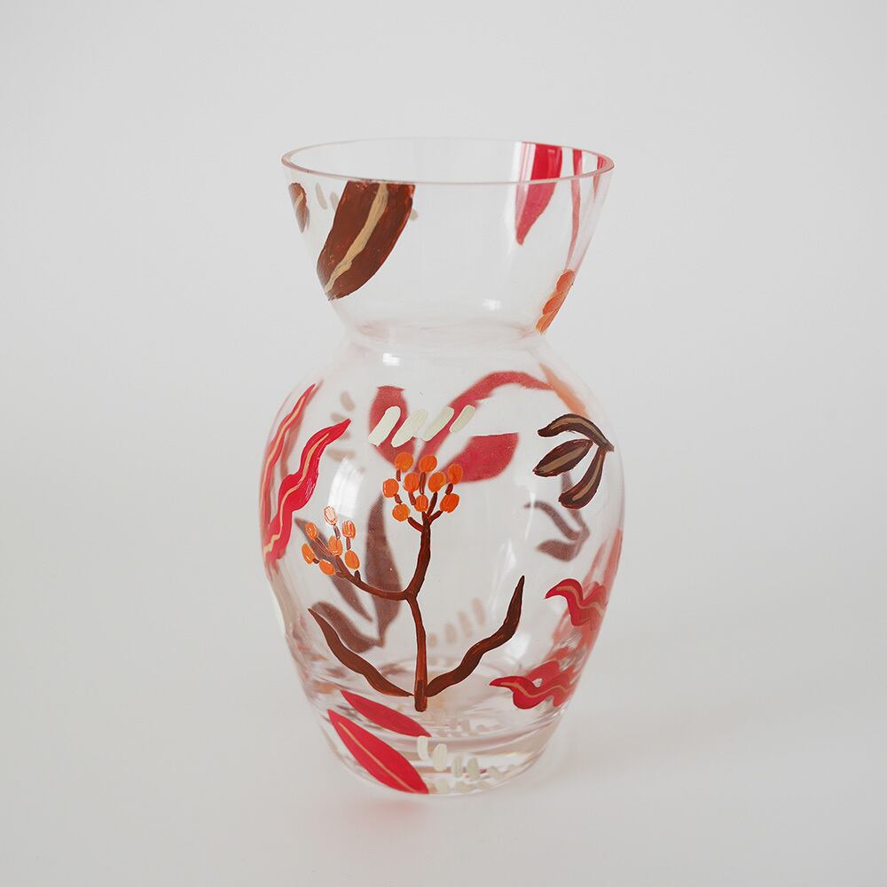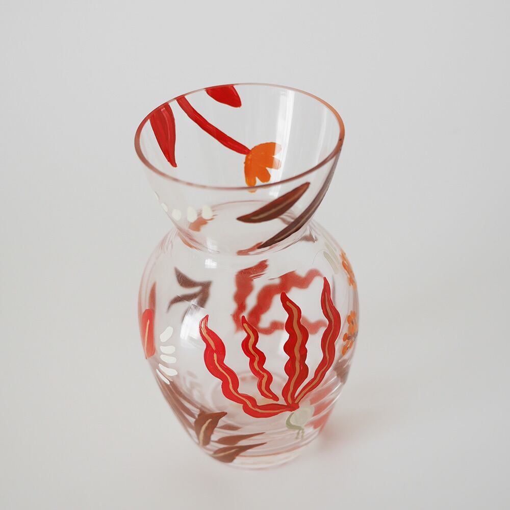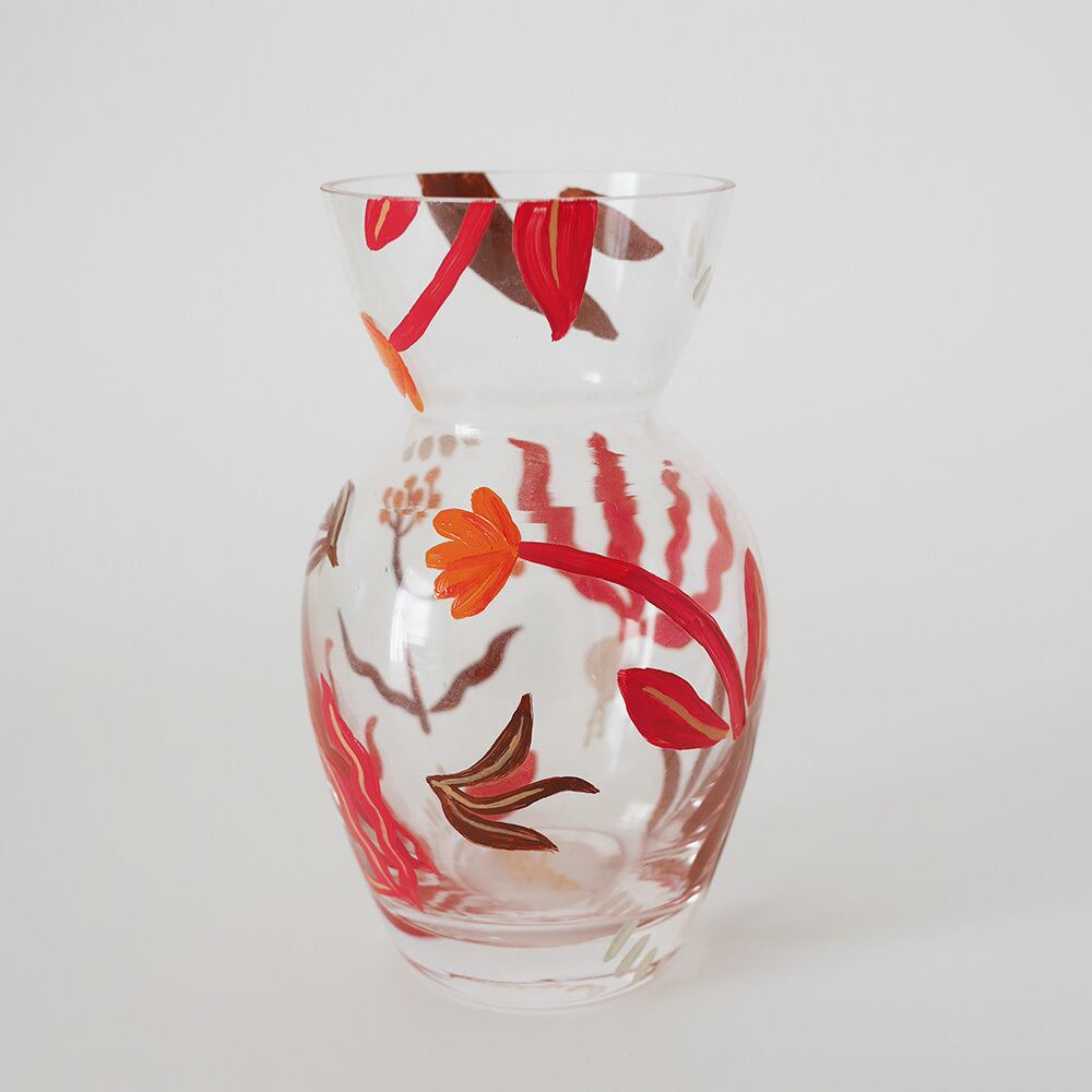 「ヴィンテージショップの片隅で見つけた、世界にひとつだけのお気に入り」をイメージして、ガラスの花瓶にひとつひとつ丁寧なハンドペイントを施しました。