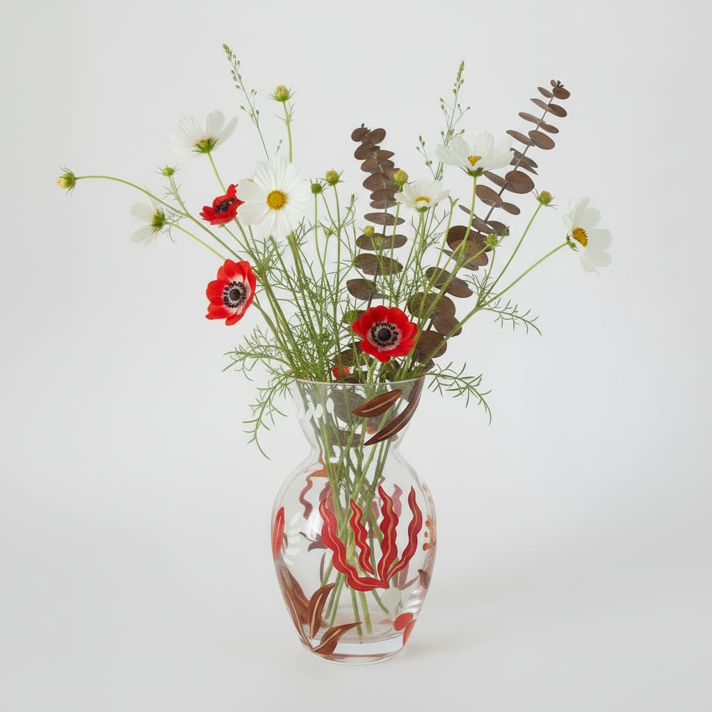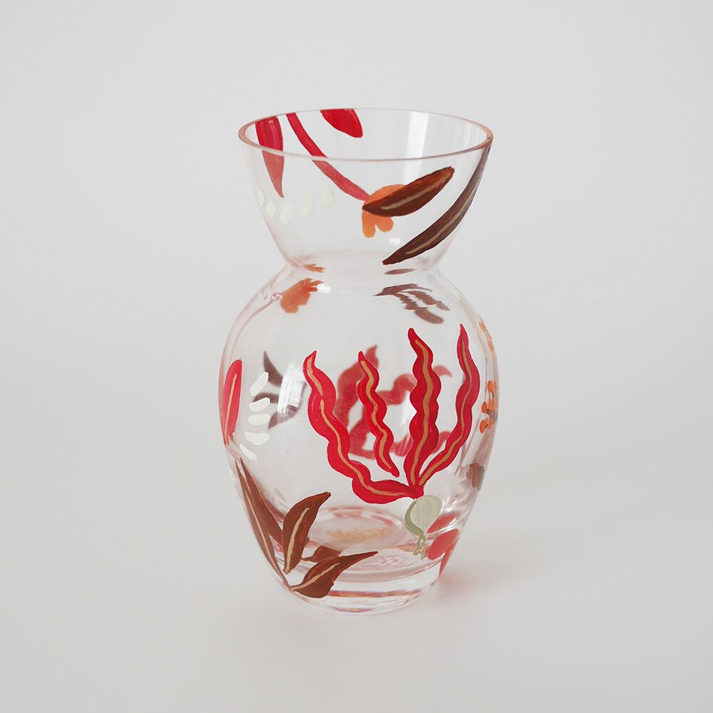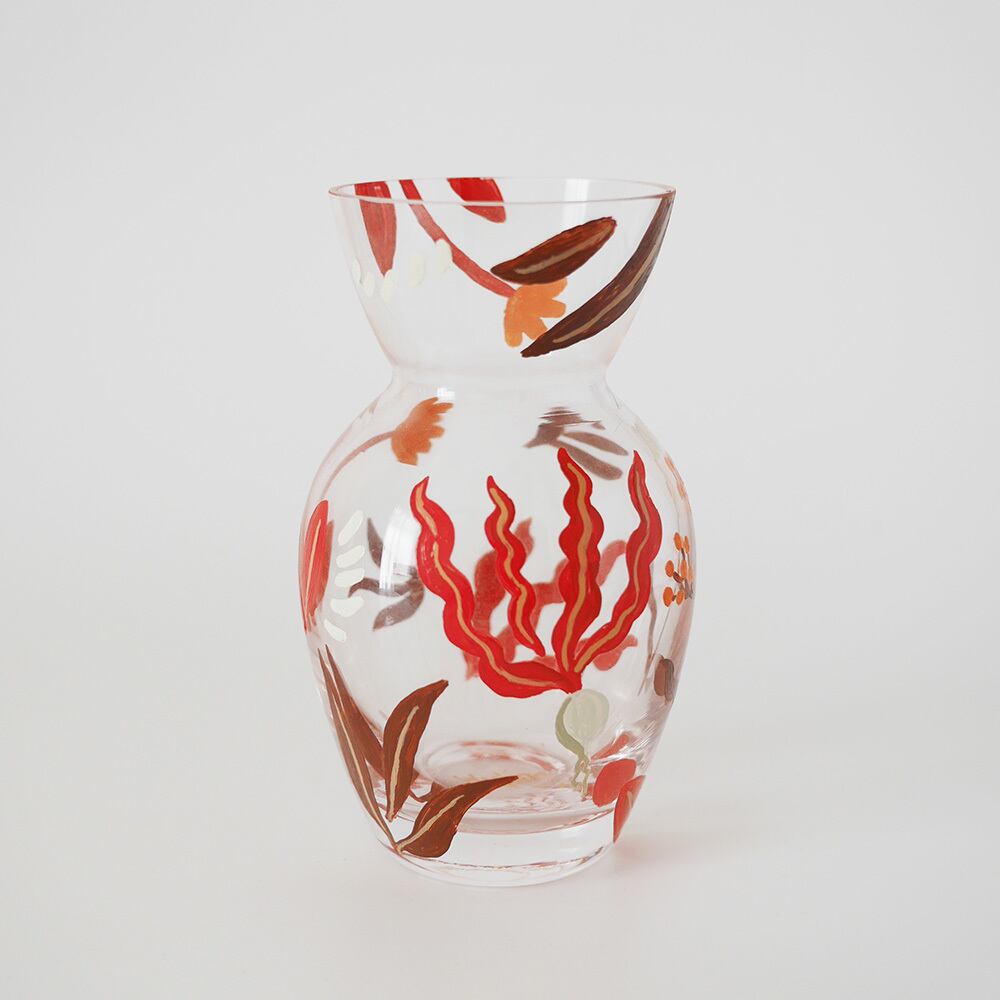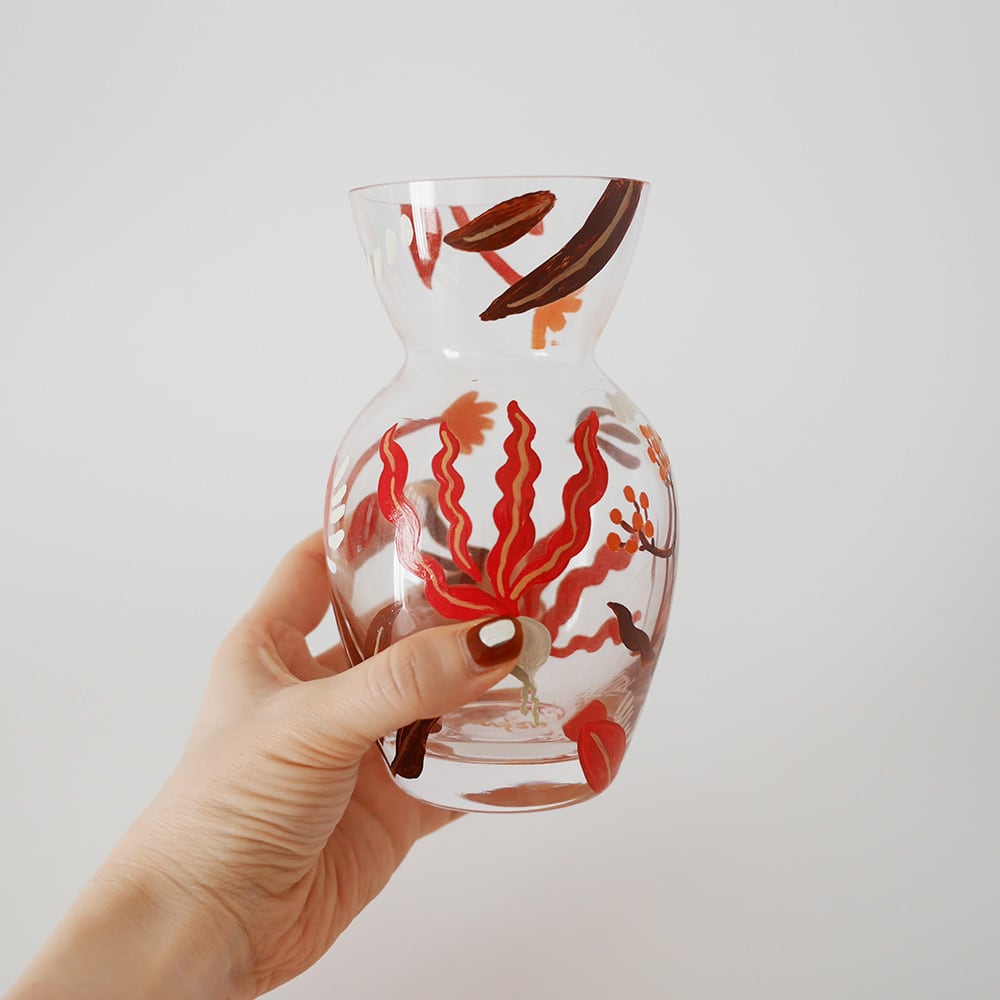「ヴィンテージショップの片隅で見つけた、世界にひとつだけのお気に入り」をイメージして、ガラスの花瓶にひとつひとつ丁寧なハンドペイントを施しました。