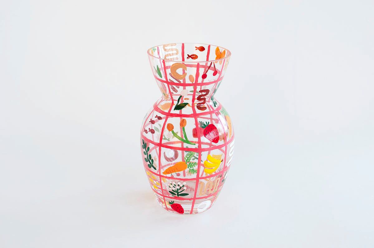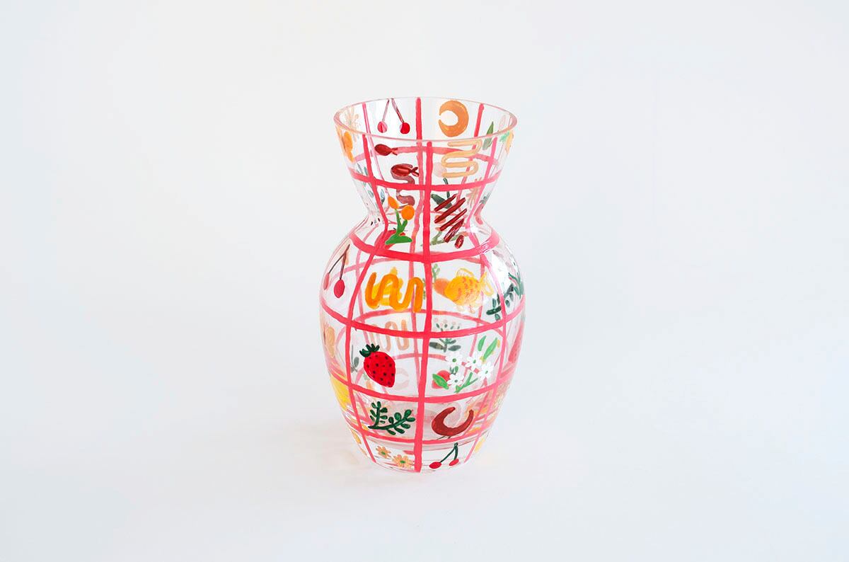 ガラスの花瓶に直接ペイントをした作品です。