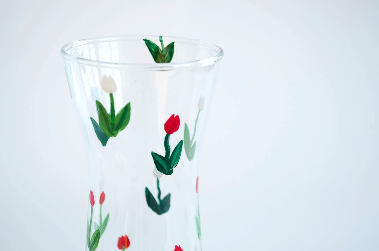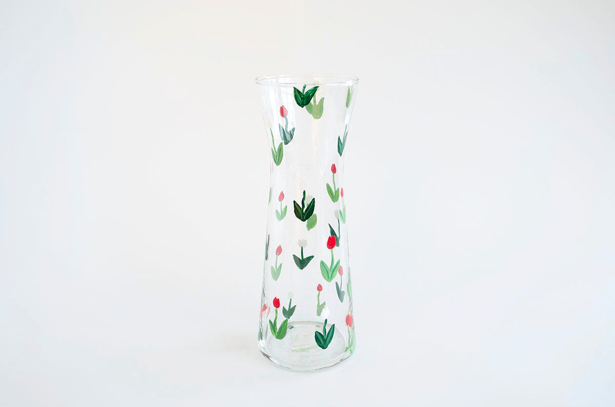 ガラスの花瓶に直接ペイントをした作品です。