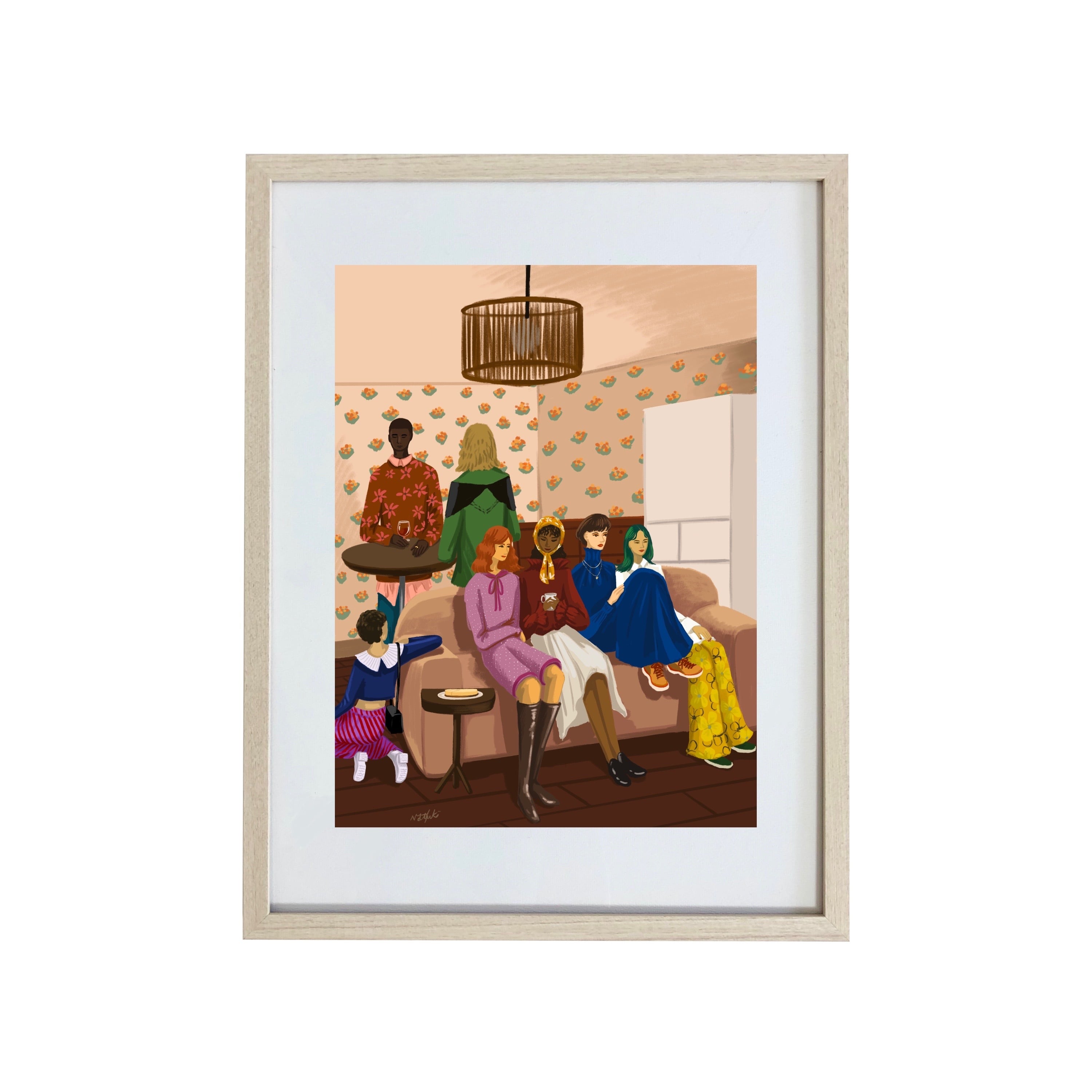 レトロなアメリカのインテリアや人物たち、ファッションを描いています。