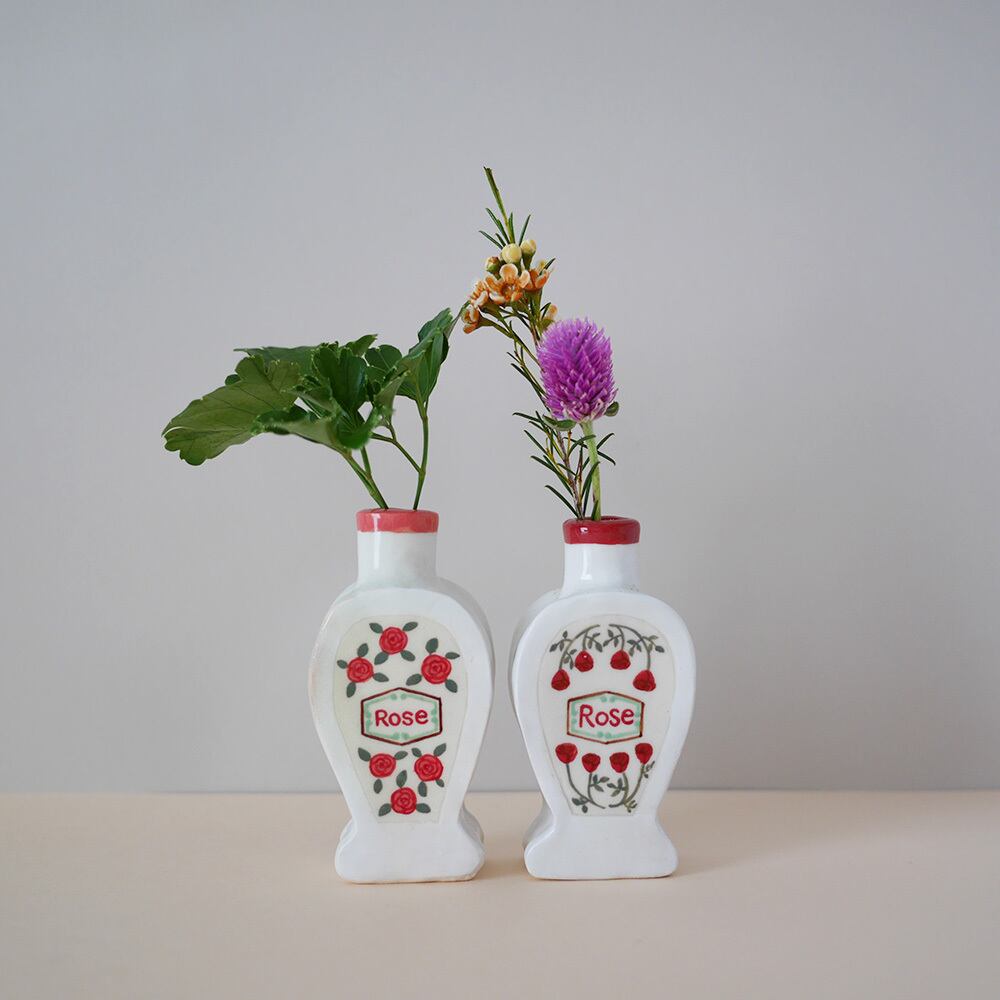 ヴィンテージのパフュームボトルをイメージした、手のひらサイズの花瓶です。