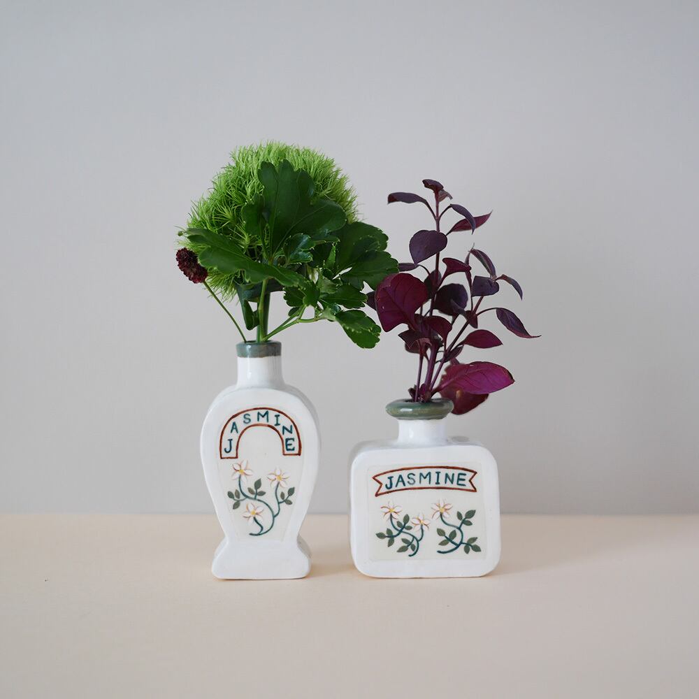 ヴィンテージのパフュームボトルをイメージした、手のひらサイズの花瓶です。