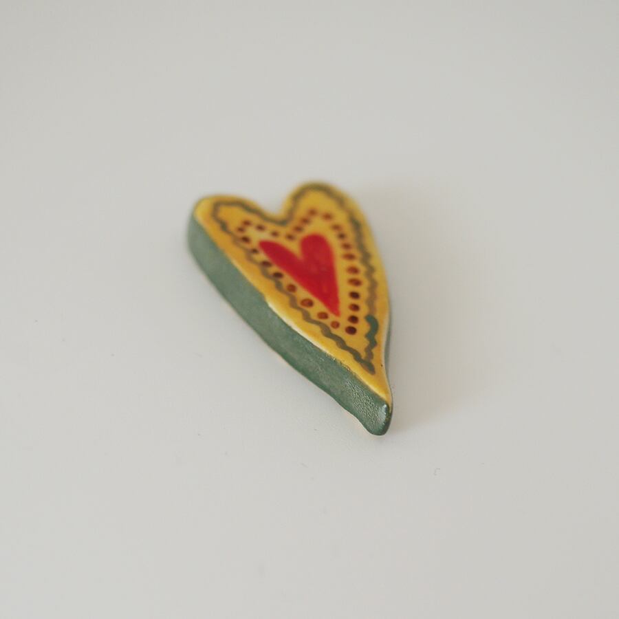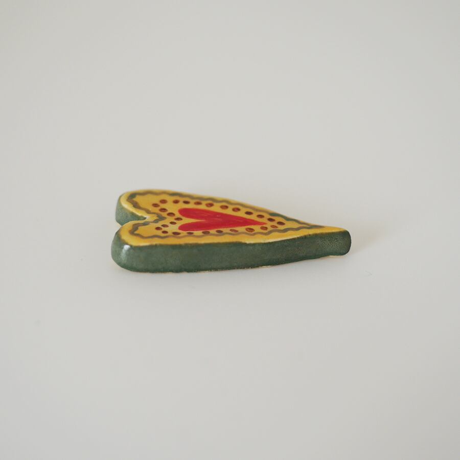 ハート型のキュートなフォルムにドローイングが入った陶器の箸置きです。