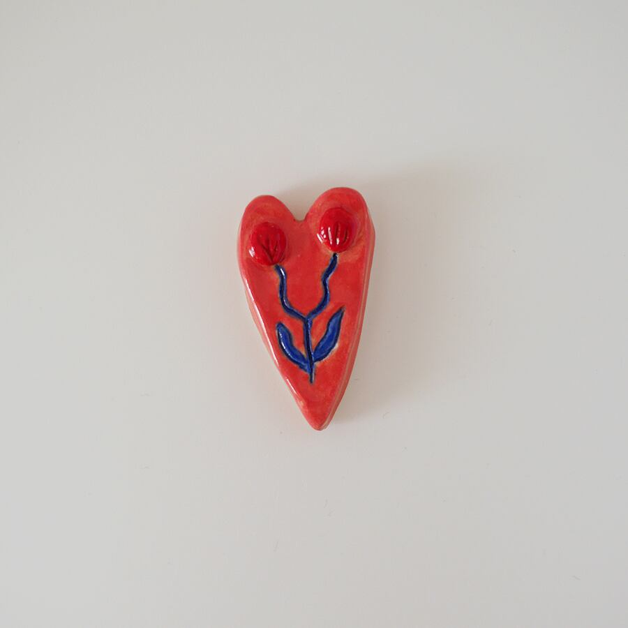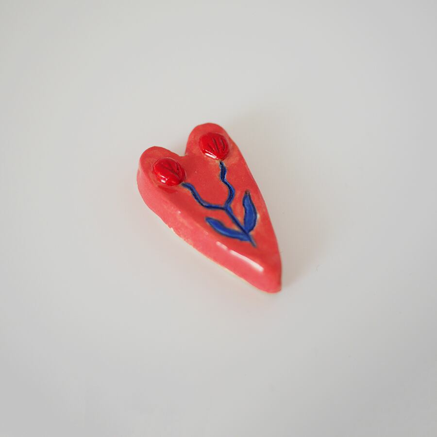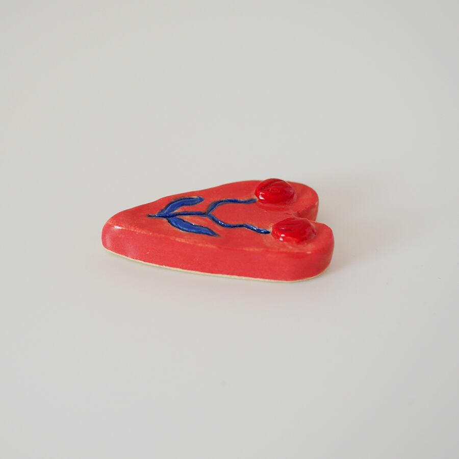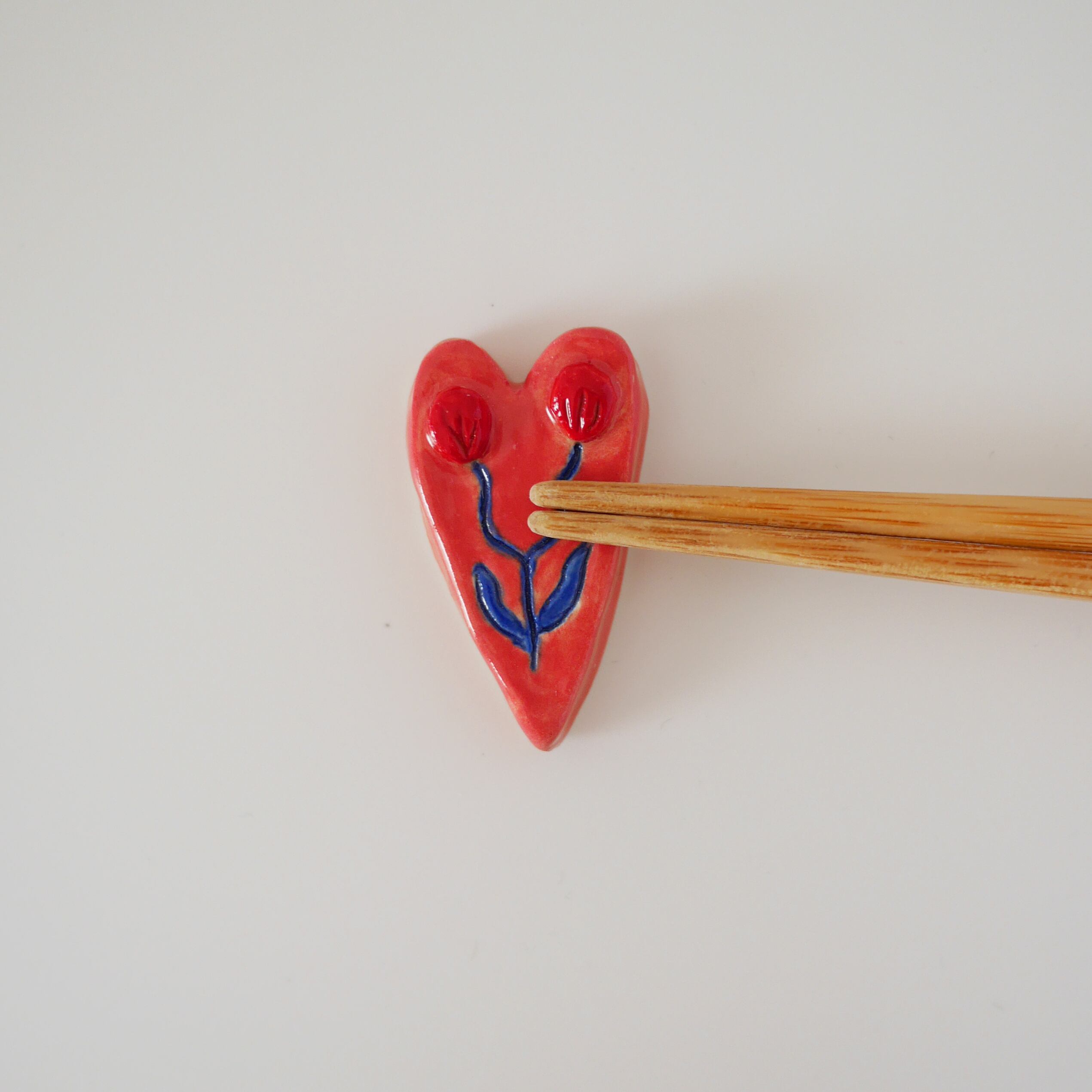 ハート型のキュートなフォルムにお花のデザインが入った陶器の箸置きです。