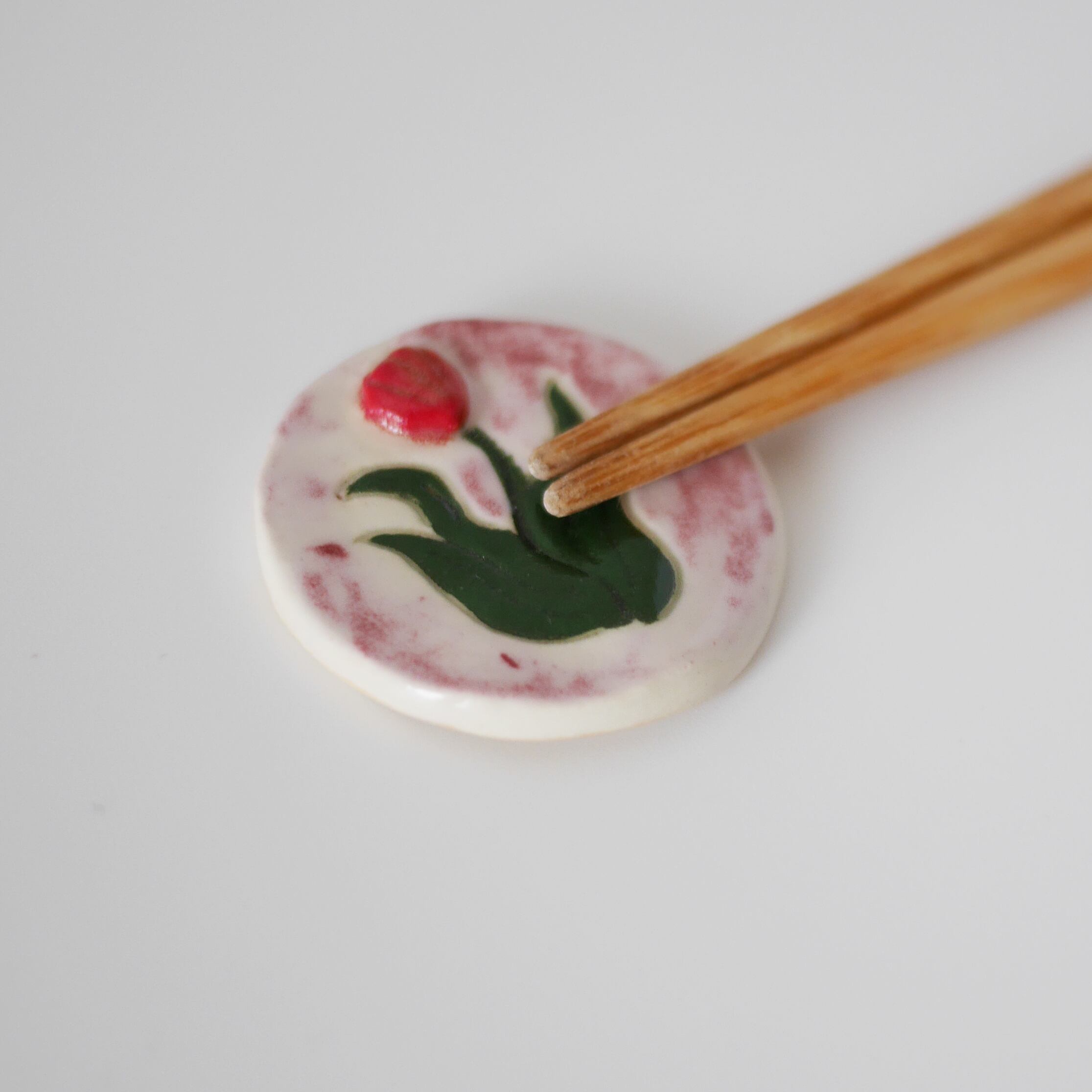 お花のデザインが入った陶器の箸置きです。