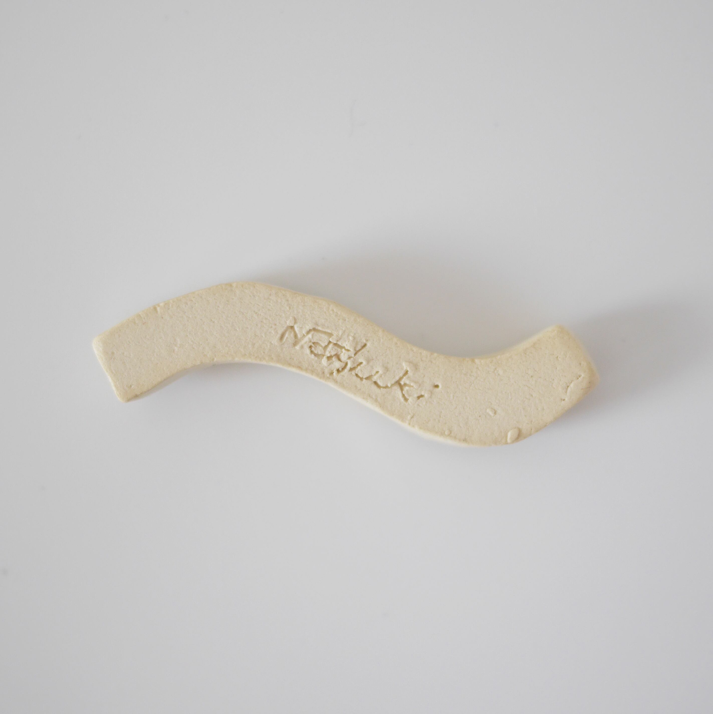 うねうねとした形にお花のデザインが入った陶器の箸置きです。