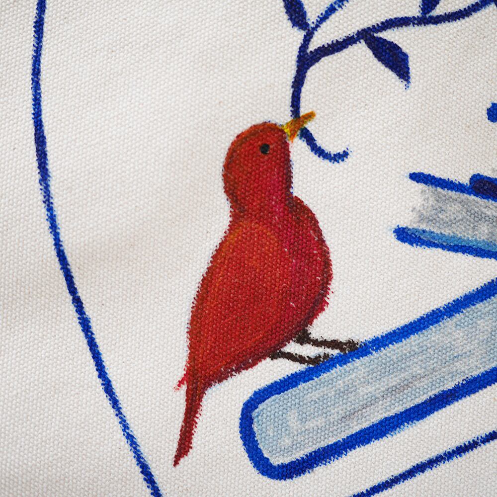 キャンバストートの上に、一点一点丁寧に直接イラストを描いて制作しています。