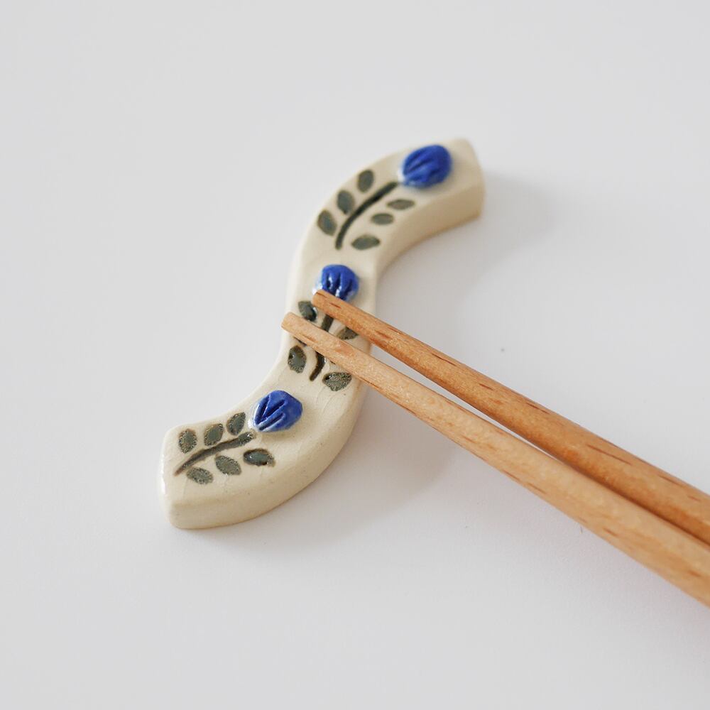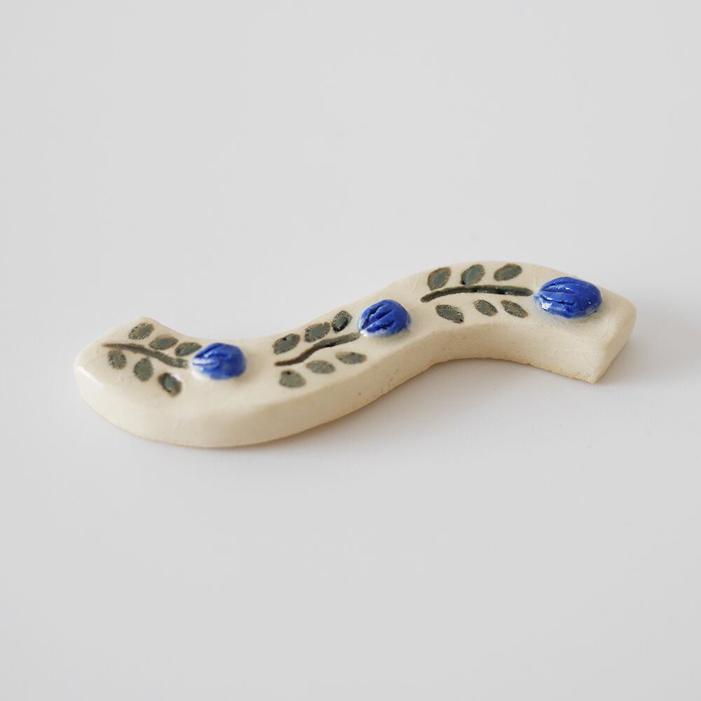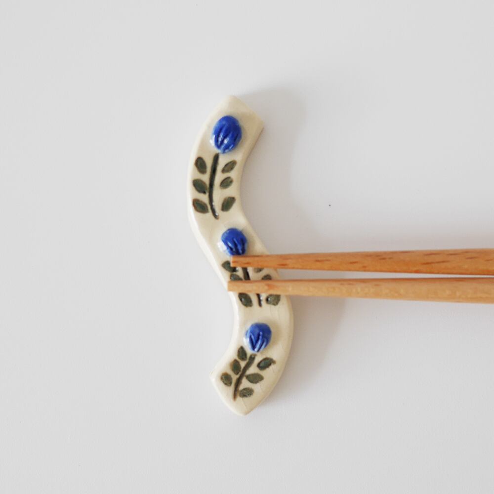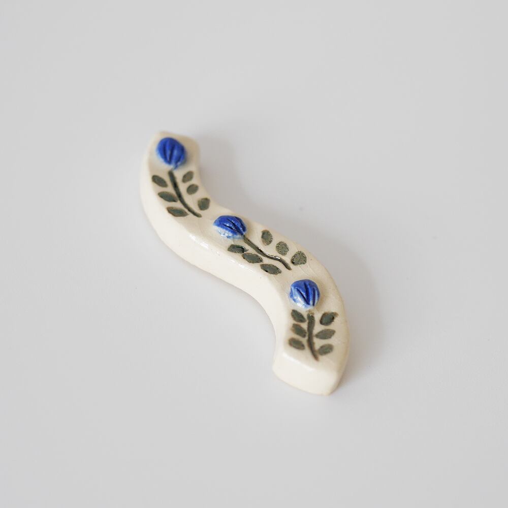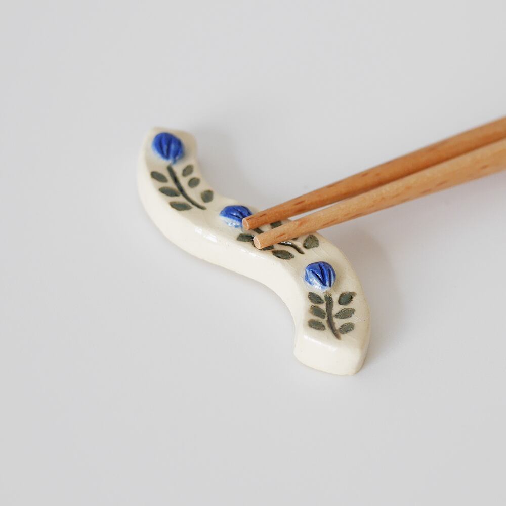 うねうねとした形にお花のデザインが入った陶器の箸置きです。