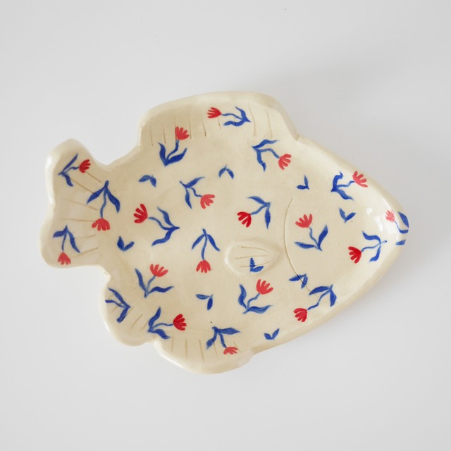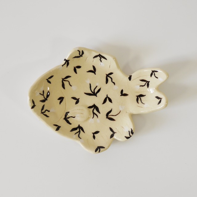 魚の形をした手のひらサイズのお皿です。 ジュエリー置きとして、またはお菓子をのせても可愛いサイズ感です。 ひとつひとつ、丁寧に手作りしています。 サイズ:13cm×11cm 素材:陶器 [注意事項] こちらをよくご確認の上ご注文くださいませ。 *食洗機、電子レンジは使用しないでください。 *写真と多少色味が異なる場合がございます。 *一点ものの作品となっております。売り切れ次第販売終了となります。 *ハンドメイドの作品となりますので、1点1点多少のサイズの誤差がありますことをご了承ください。 *ラッピングは承っておりません。 *返品、交換は受け付けておりません。