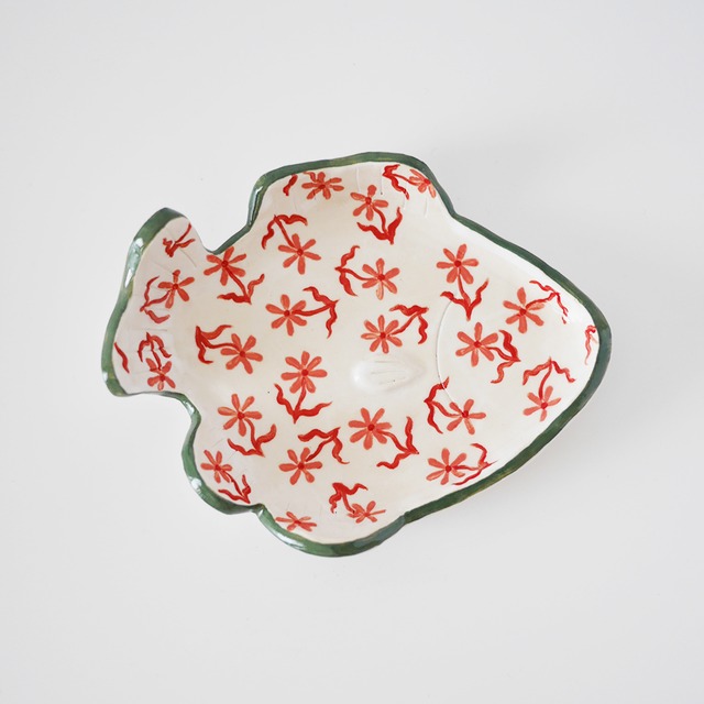 魚の形をした手のひらサイズのお皿です。 ジュエリー置きとして、またはお菓子をのせても可愛いサイズ感です。 ひとつひとつ、丁寧に手作りしています。 サイズ:13cm×11cm 素材:陶器 [注意事項] こちらをよくご確認の上ご注文くださいませ。 *フラワーベースやお皿、箸置きは水漏れ防止剤を施しておりますので目止めの処理は必要ありませんが、水漏れ防止剤は永久防水ではございませんので、効果が薄れた場合に目止めをお試しください。 *食洗機、電子レンジは使用しないでください。 *写真と多少色味が異なる場合がございます。 *一点ものの作品となっております。売り切れ次第販売終了となります。 *ハンドメイドの作品となりますので、1点1点多少のサイズの誤差がありますことをご了承ください。 *ラッピングは承っておりません。 *返品、交換は受け付けておりません。