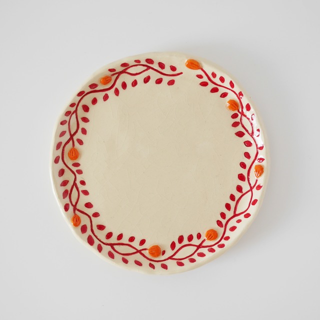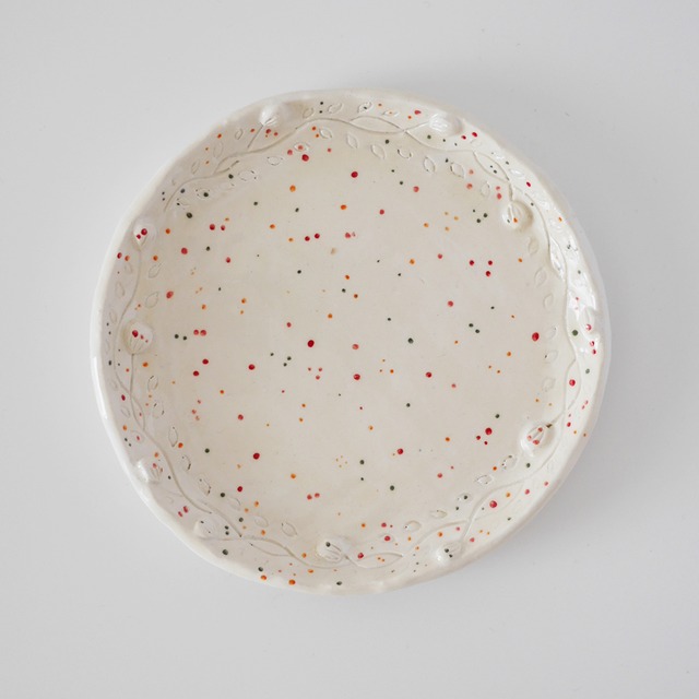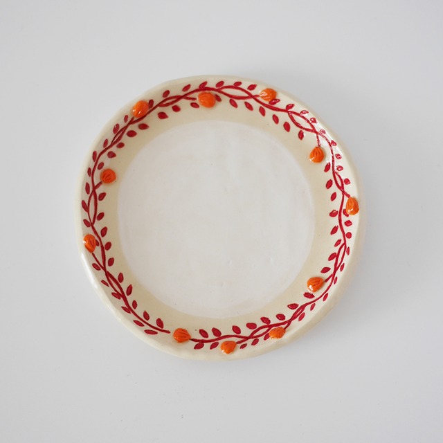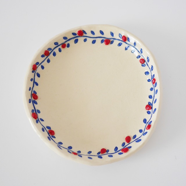 花柄が周囲に入った手のひらサイズのお皿です。 お花の部分は立体的になっています。 ひとつひとつ、丁寧に手作りしています。 サイズ:13cm 素材:陶器 [注意事項] こちらをよくご確認の上ご注文くださいませ。 *食洗機、電子レンジは使用しないでください。 *写真と多少色味が異なる場合がございます。 *一点ものの作品となっております。売り切れ次第販売終了となります。 *ラッピングは承っておりません。 *ハンドメイドの作品となりますので、1点1点多少のサイズの誤差がありますことをご了承ください。 *返品、交換は受け付けておりません。